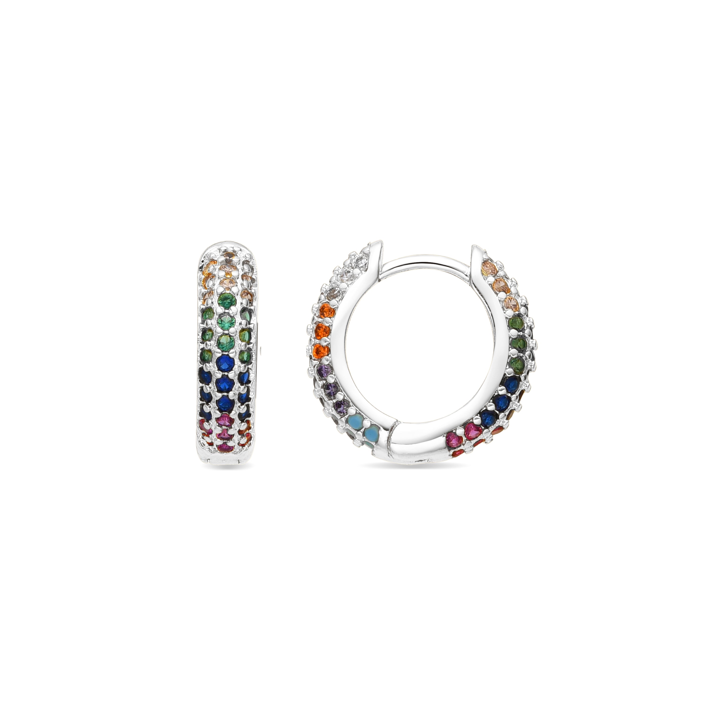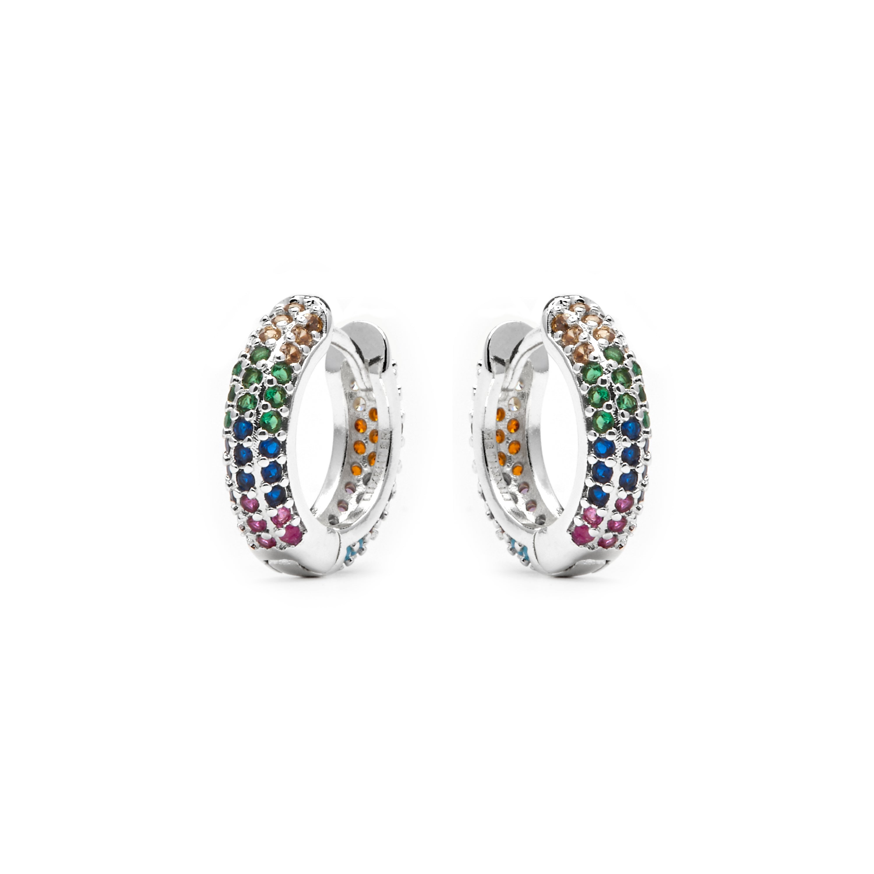 Pendientes de 9mm de diámetro acabado plata y circonita Multicolor - Lesrat