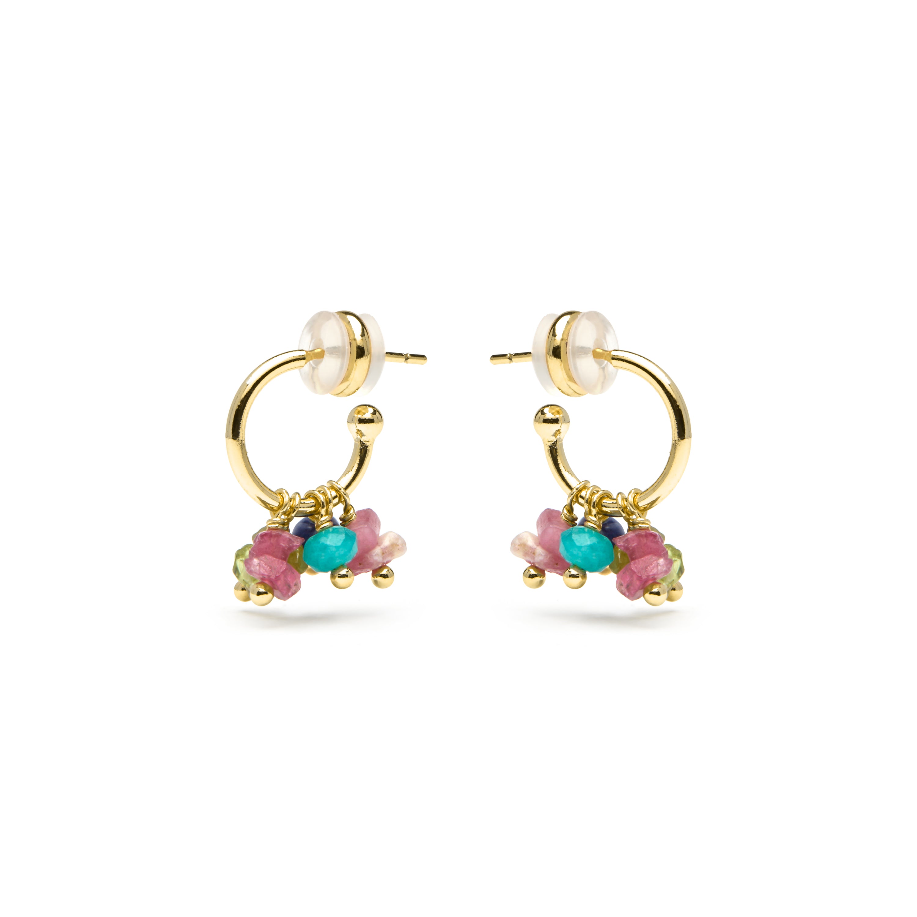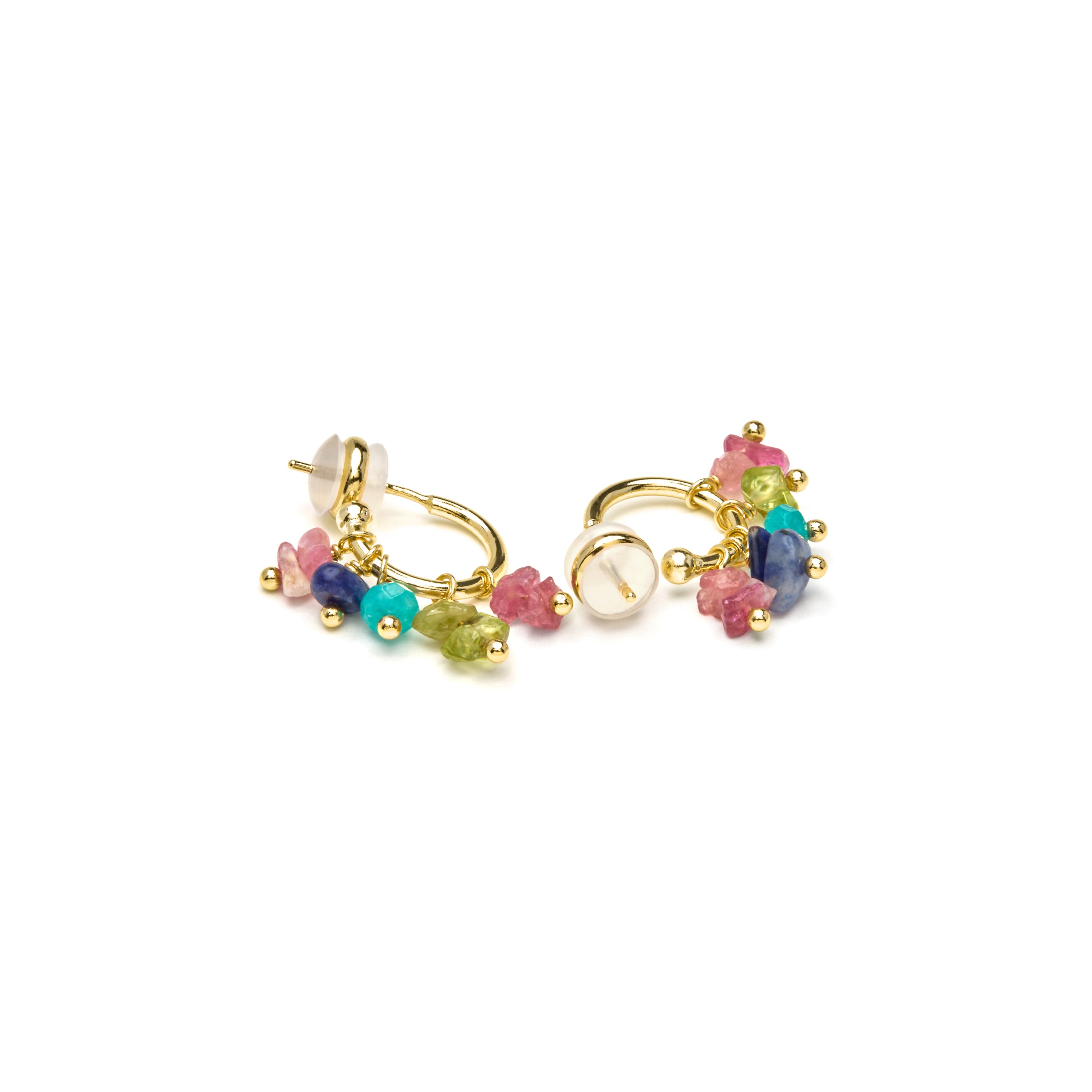 Pendientes acabado oro amarillo de 18k y Multicolor Piedra Natural - Onisu