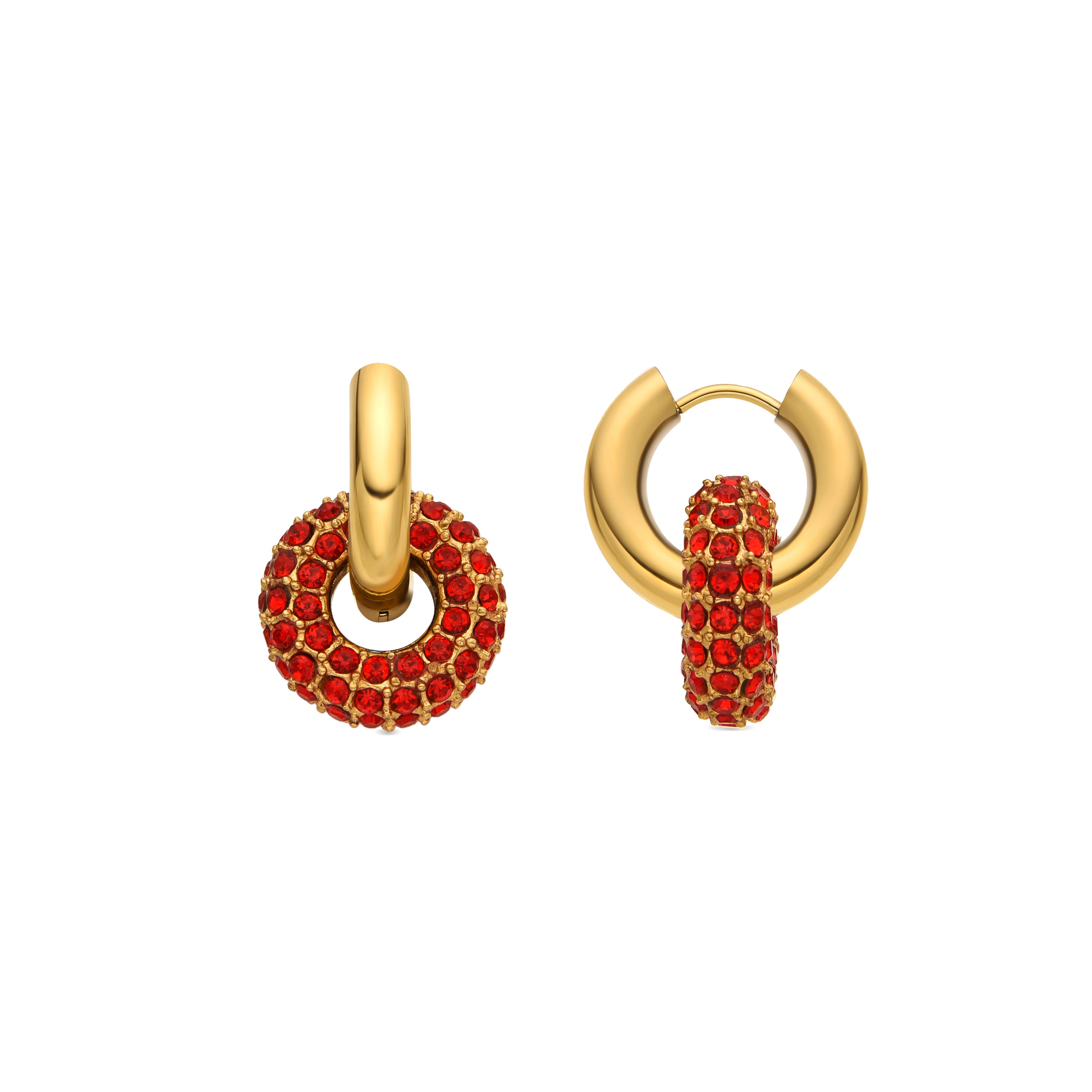Pendientes con Cristal Rojo acabado oro 18k - Rawe