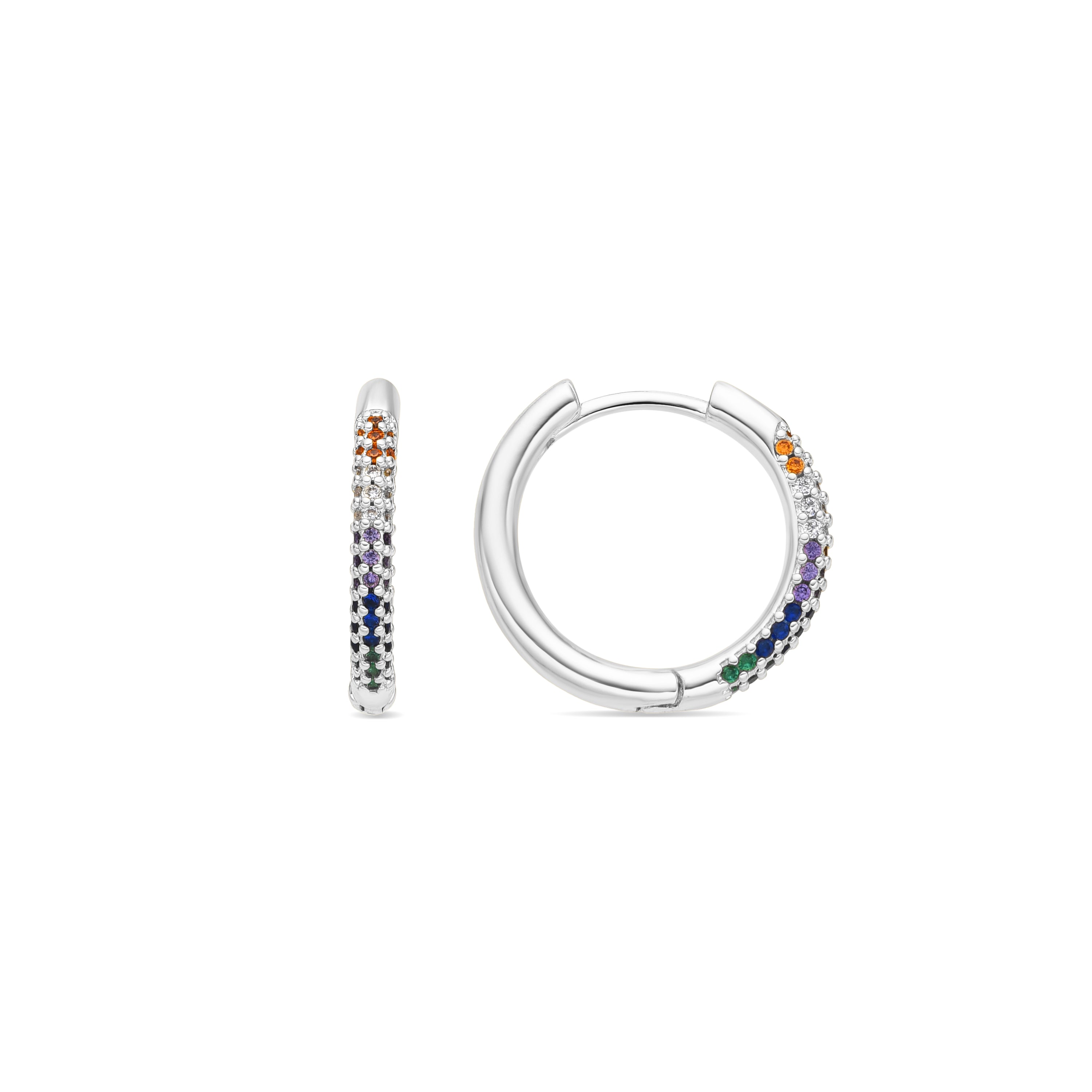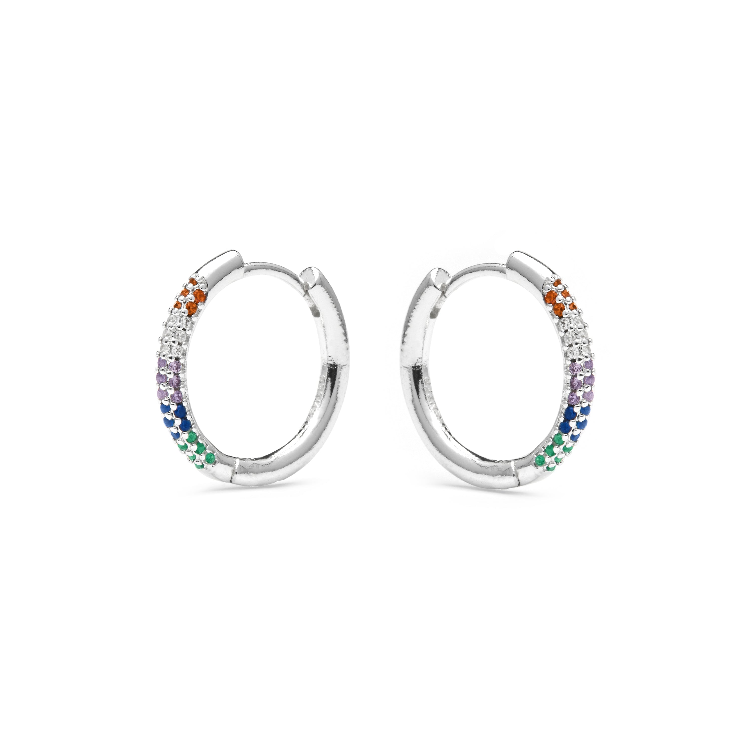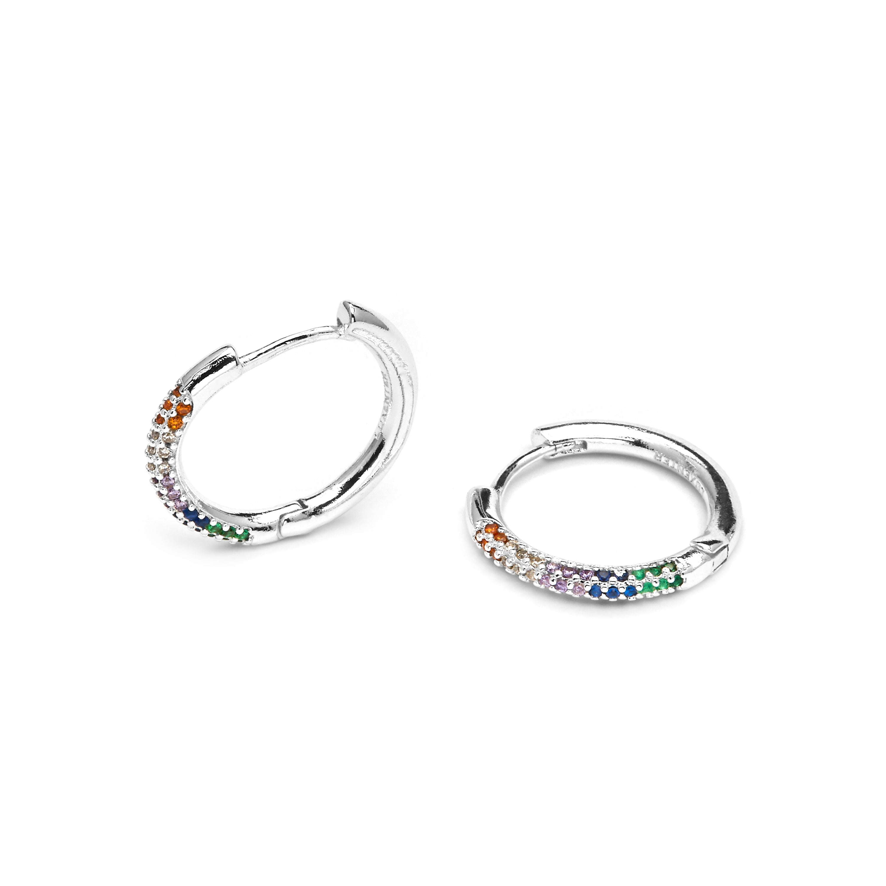 Pendientes de 15,5mm de diámetro acabado plata con circonita multicolor - Thybus