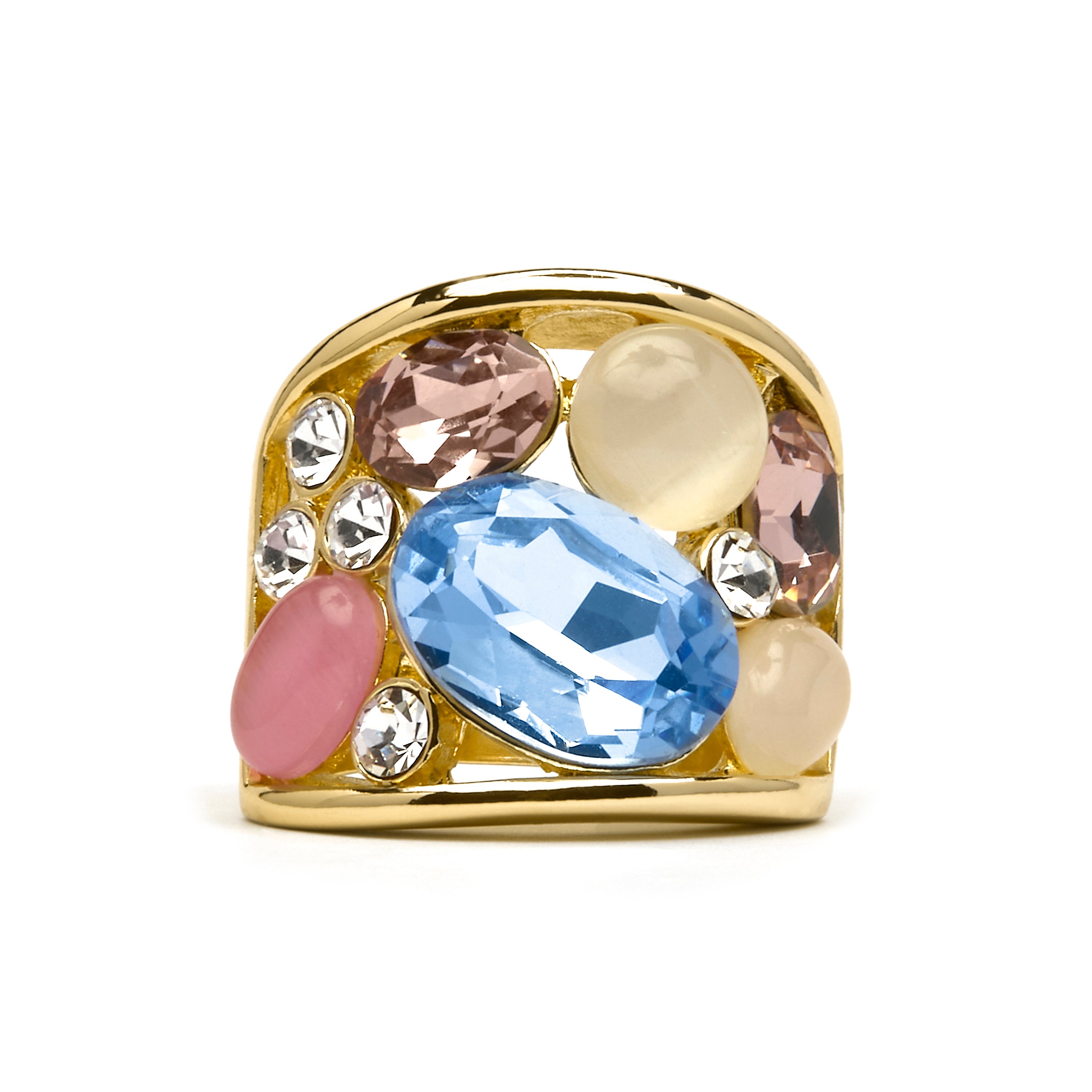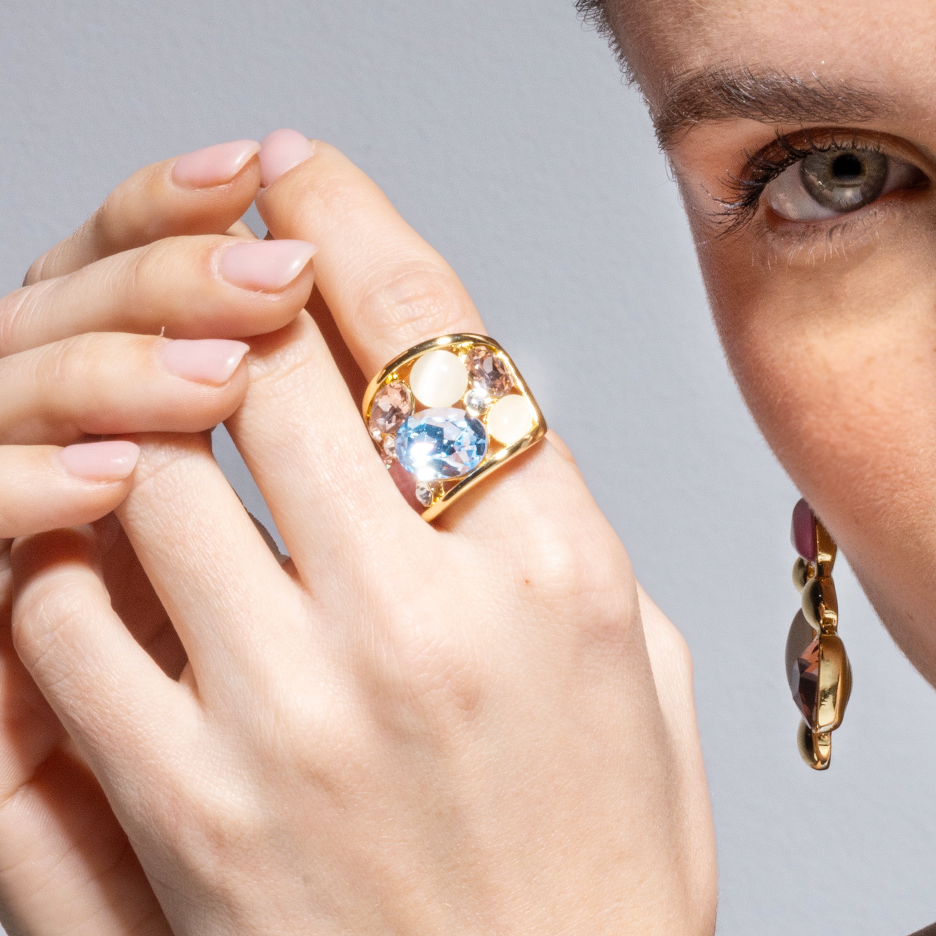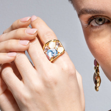 Anillo Sionu de Cristal Multicolor acabado oro amarillo de 18k