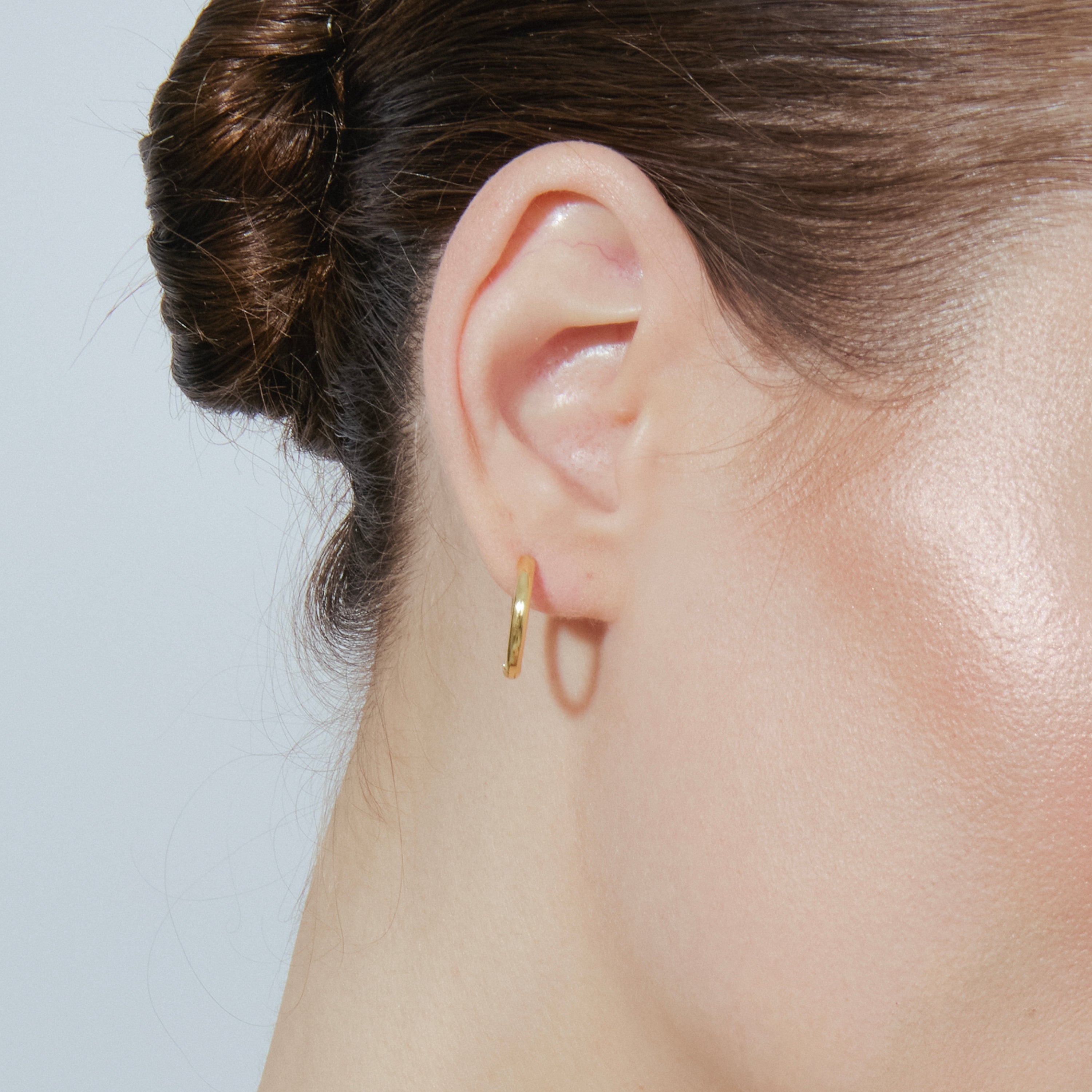 Aros edum de plata de ley 925 con acabado en baño de oro amarillo de 18 quilates. Essential encarna la sencillez refinada, piezas atemporales con líneas suaves y el brillo adicional de las circonitas. Joyas básicas sin pretensiones que son perfectas para el uso diario, pero también pueden funcionar en ocasiones especiales.