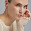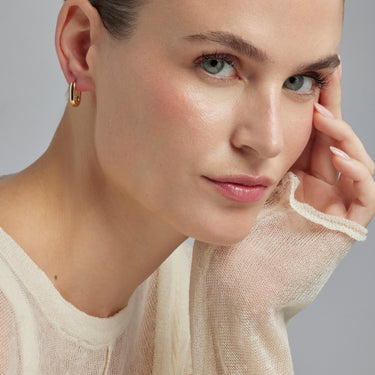 Pendientes Tankon acabados en oro amarillo de 18k. África Basic encarna la sencillez refinada, piezas atemporales con líneas suaves y el brillo adicional de las circonitas. Joyas básicas sin pretensiones que son perfectas para el uso diario, pero también pueden funcionar en ocasiones especiales.