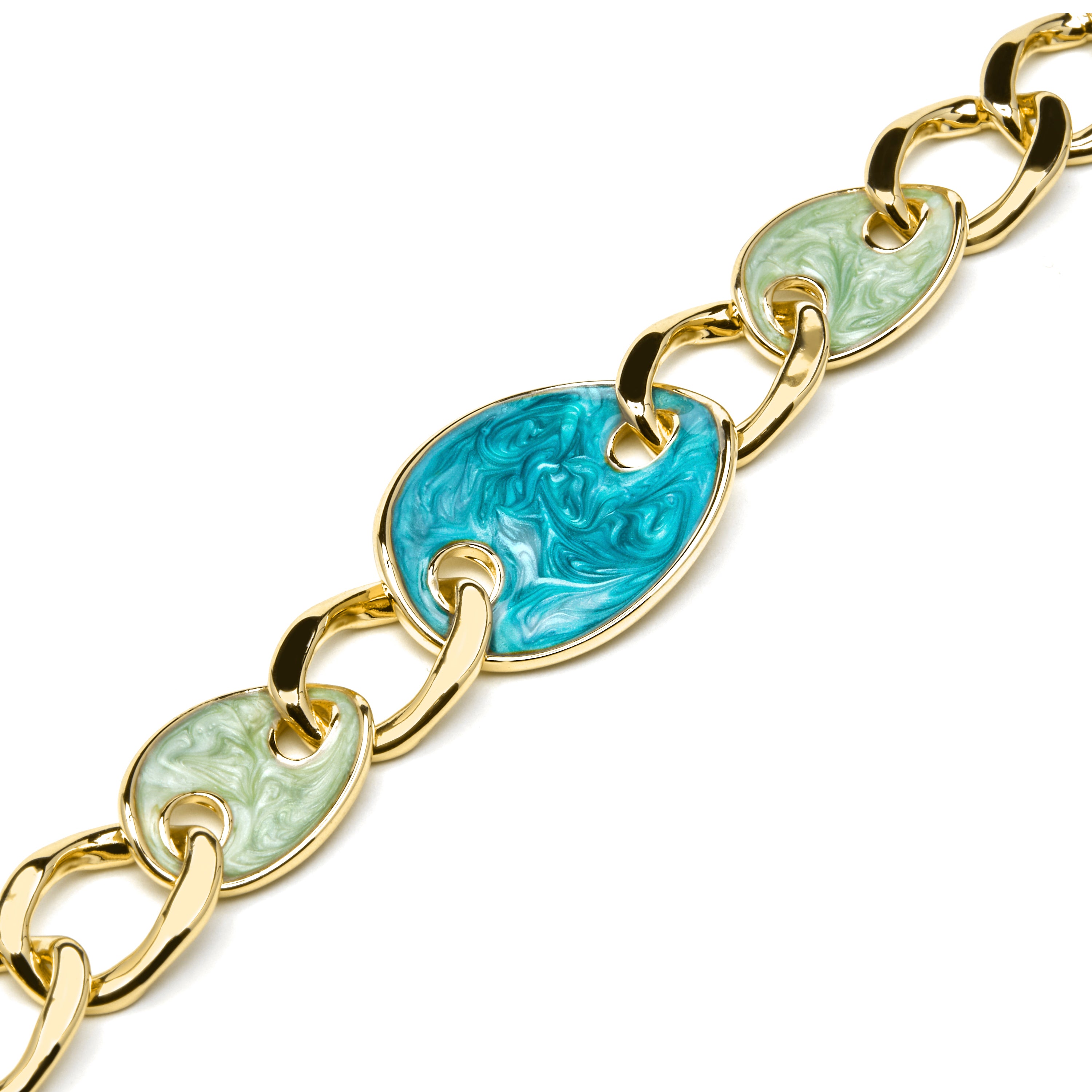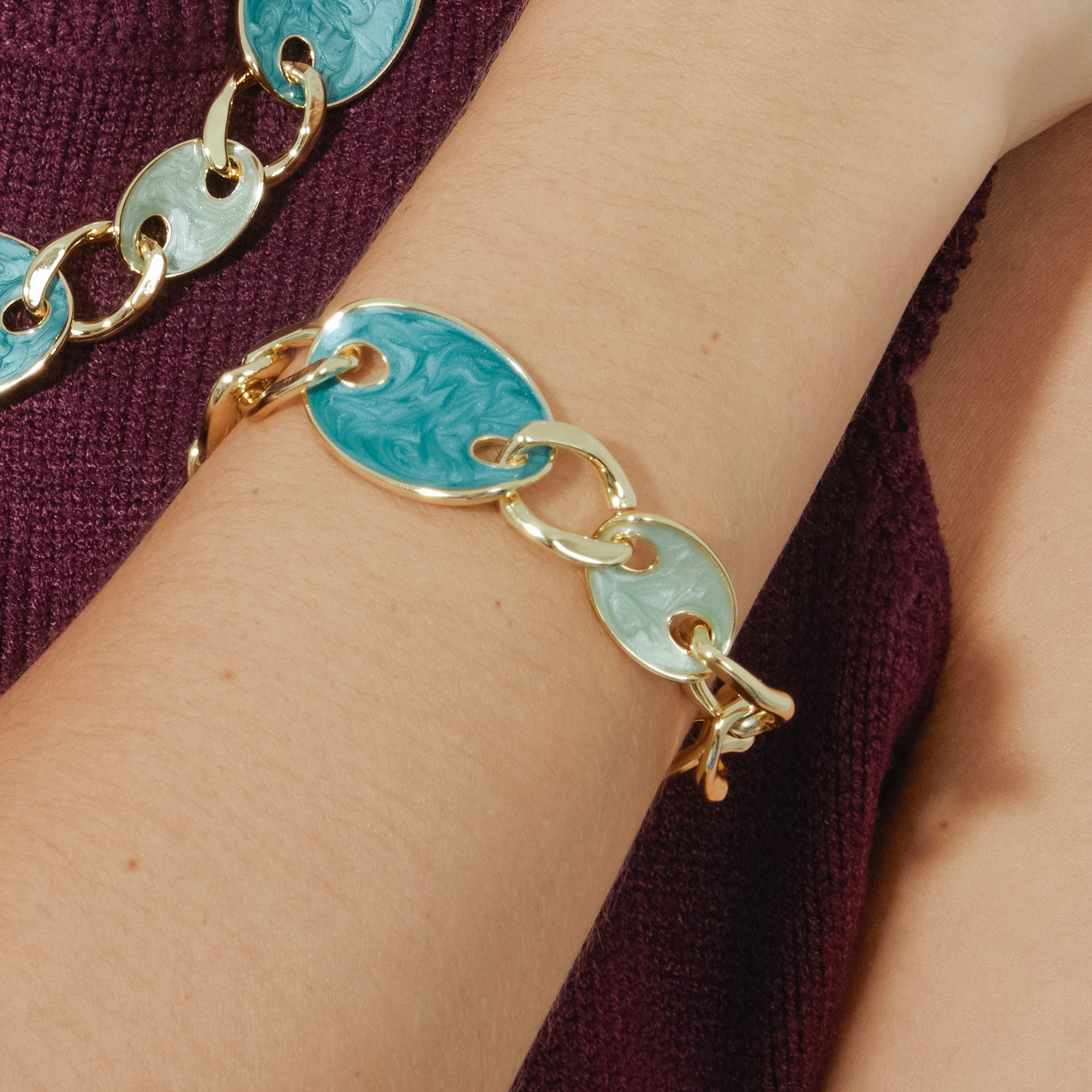 Pulsera acabado oro amarillo de 18k y Lacado Azul - Makan