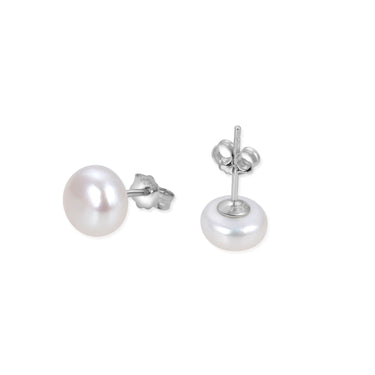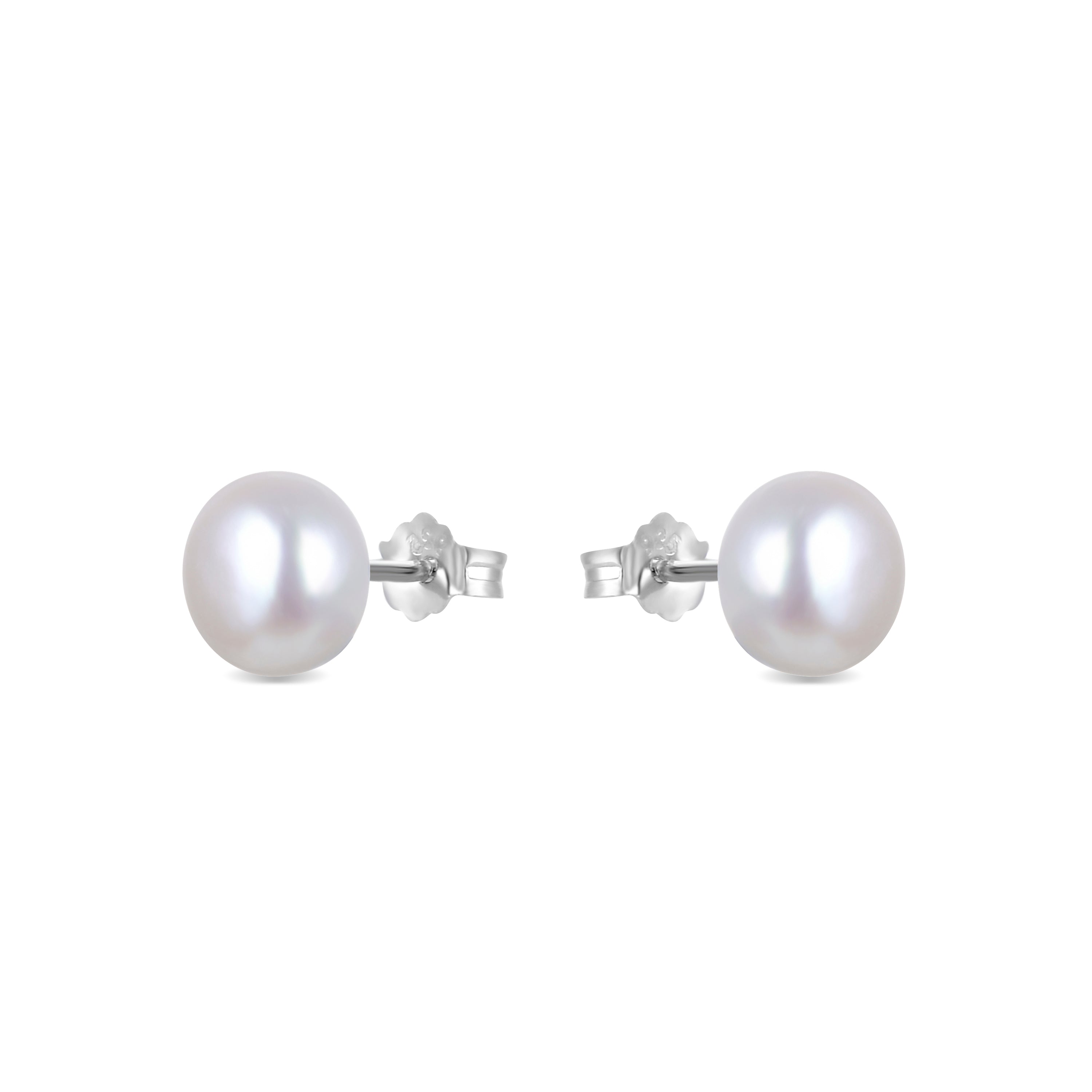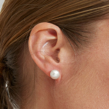 Pendientes de Plata de Ley 925 de 10mm con Perla Blanca acabados en rodio - Básico