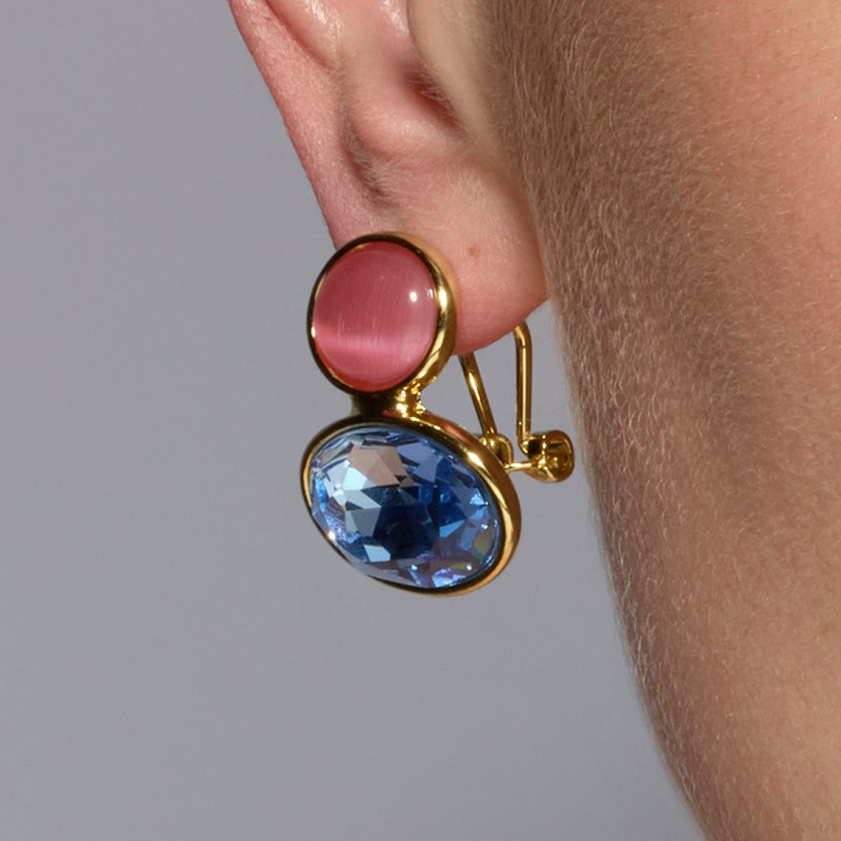Pendientes Sigro de Cristal Azul acabado oro amarillo de 18k