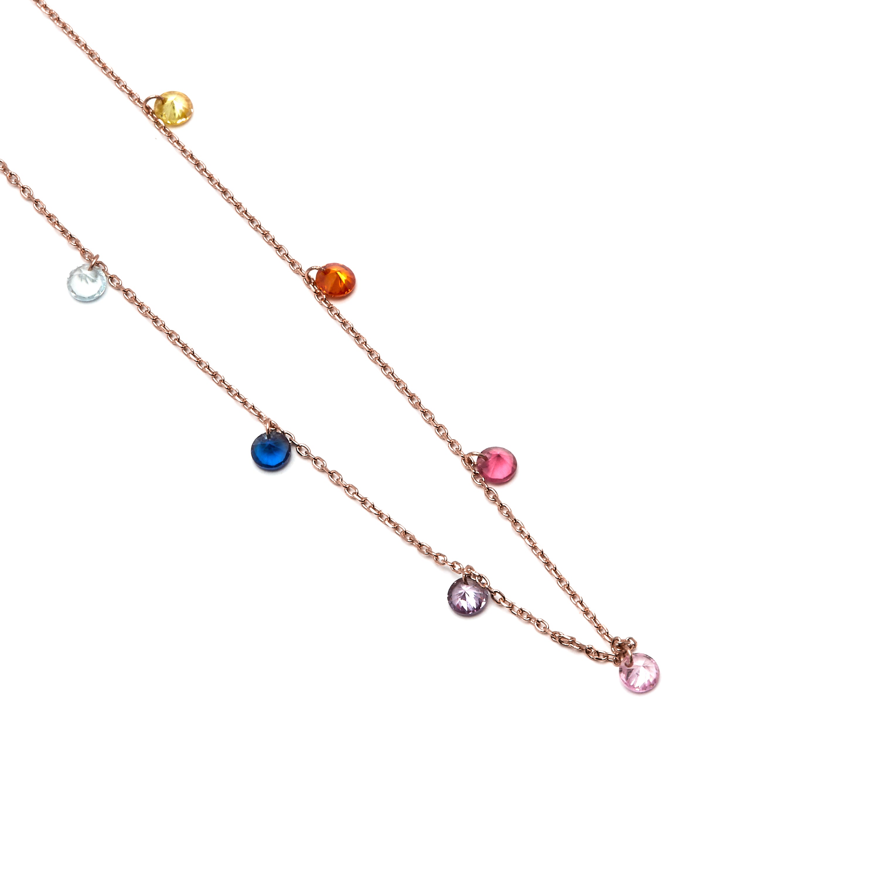 Collar de Plata de Ley 925 con Circonita Multicolor acabado en oro rosa 18K - Rolcon