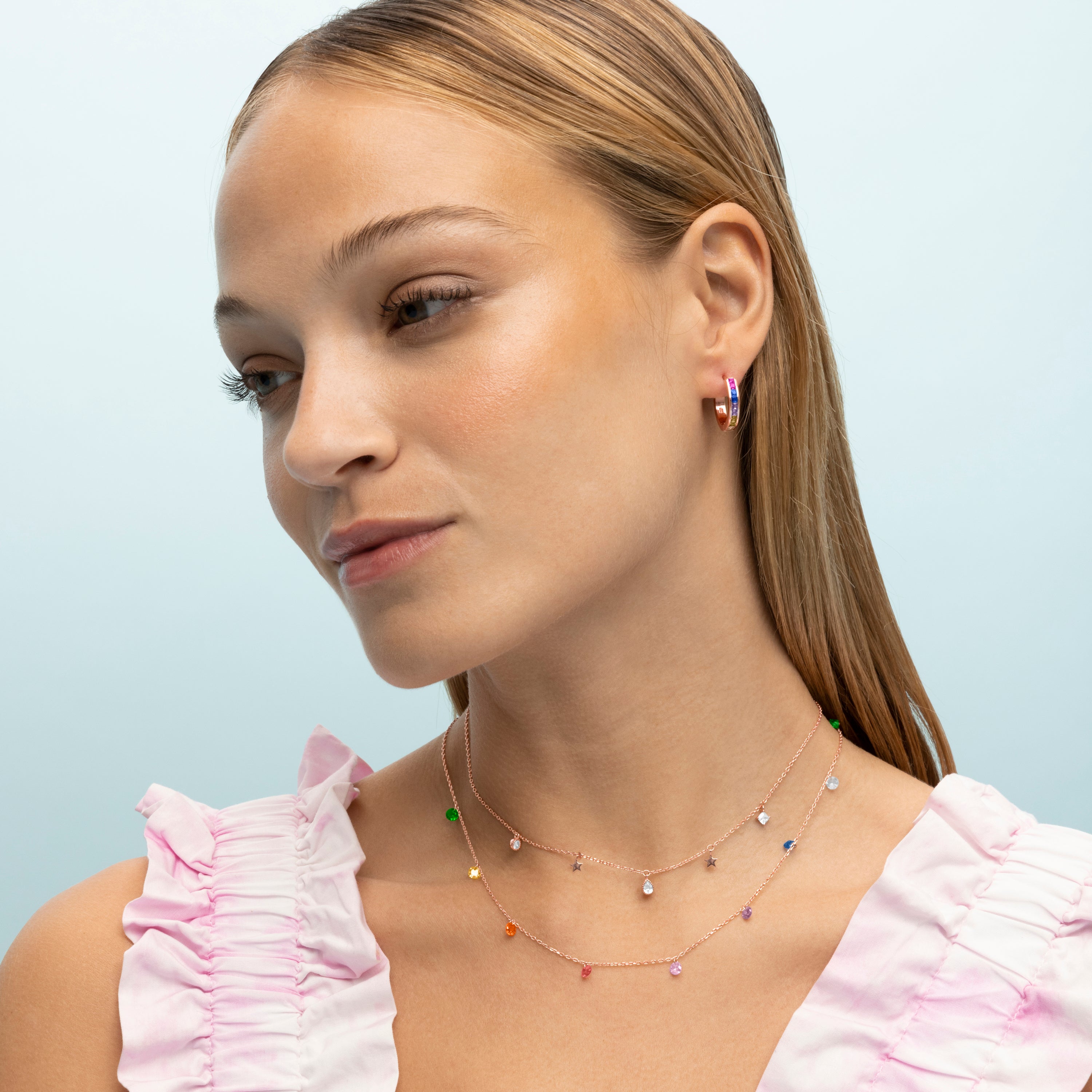 Collar rolcon de plata de ley 925 y circonita multicolor con acabado en baño oro rosa de 18 quilates. Pide un deseo se caracteriza por diseños de carácter joven, repletos de significado y color, originales a la vez que discretos, que pretenden convertirse en pequeños amuletos.