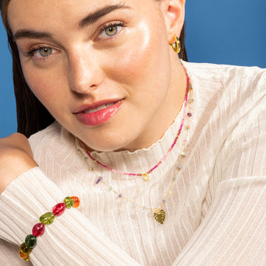 Collar Corazón cierre de Plata de Ley 925, abalorios de metal y Cristal Rosa acabado en oro amarillo de 18k. Pide un deseo se caracteriza por diseños de carácter joven, repletos de significado y color, originales a la vez que discretos, que pretenden convertirse en pequeños amuletos.