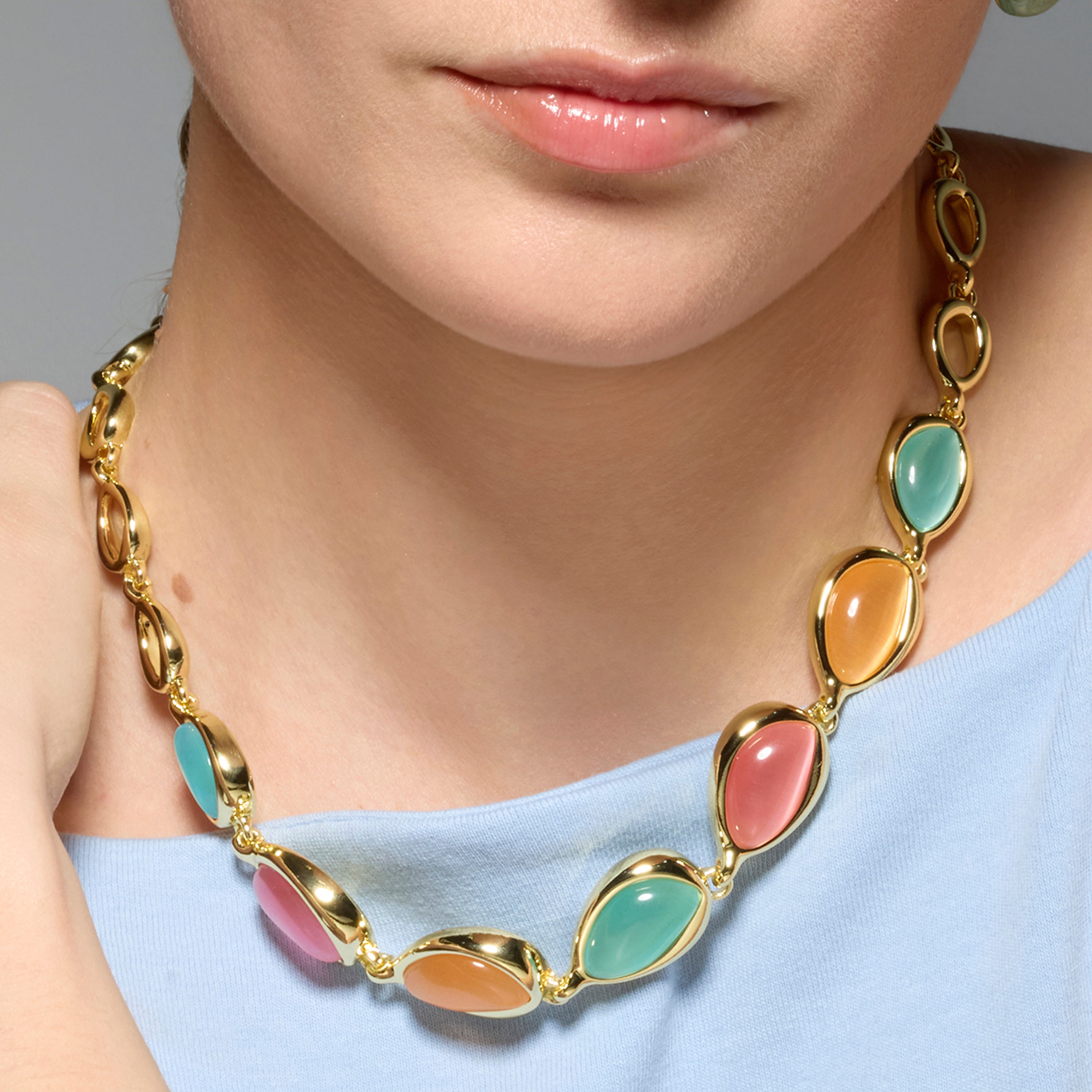 Collar Dulfo de Ojo de Gato Multicolor acabado oro amarillo de 18k