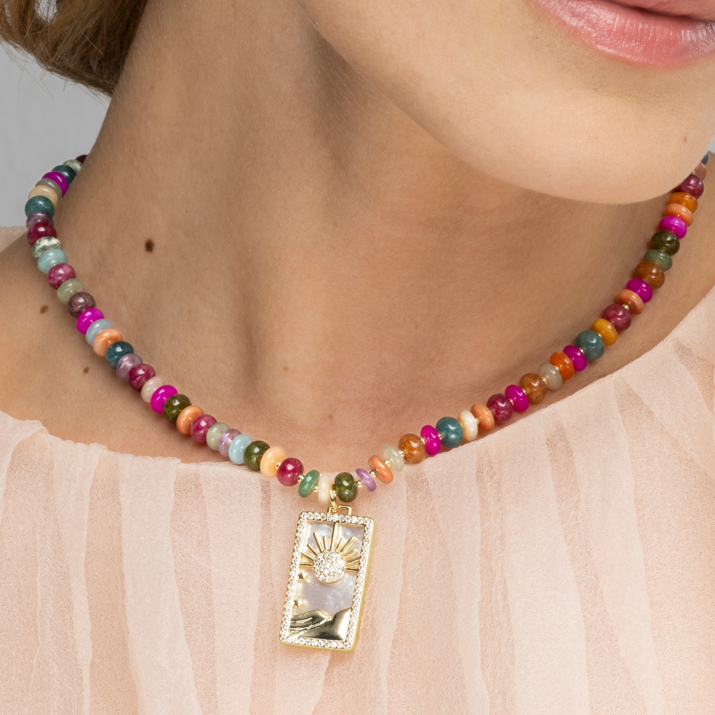Collar de Plata de Ley 925 y Agata Multicolor acabado oro amarillo de 18k - Laha