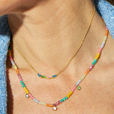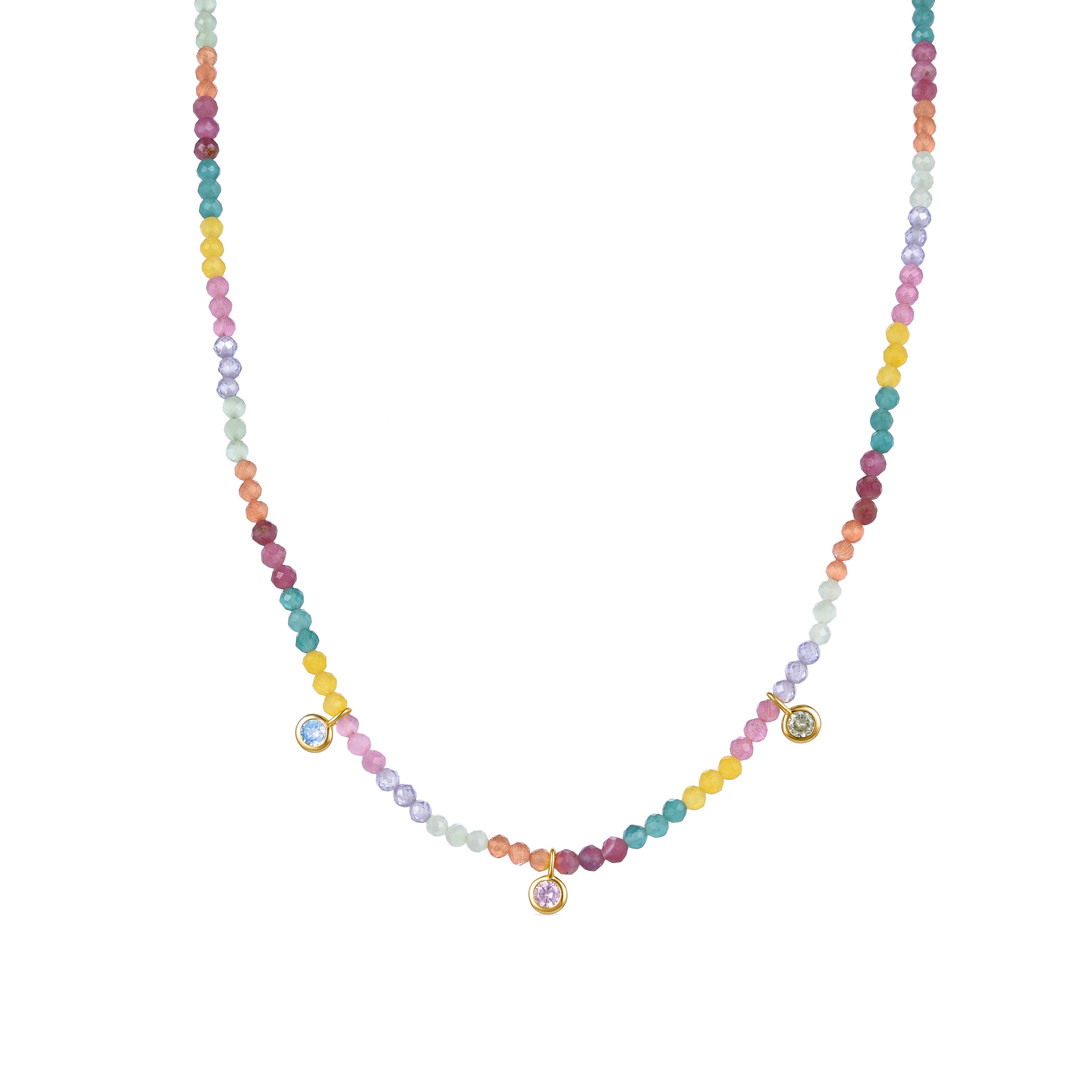 Collar de Plata de Ley 925 con Circonita Multicolor acabado en oro amarillo 18K - Ruane