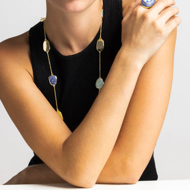 Collar Talyu con Lacado Azul acabado oro 18k. África se convierte en la línea perfecta para mujeres con personalidad, que no temen arriesgar y lucir piezas con carácter propio.