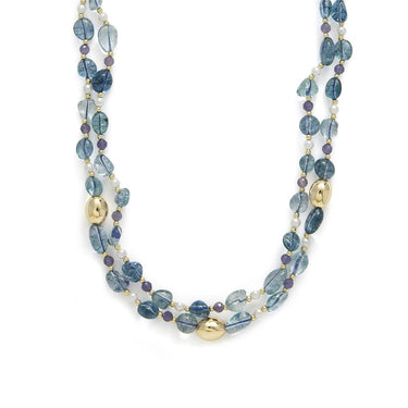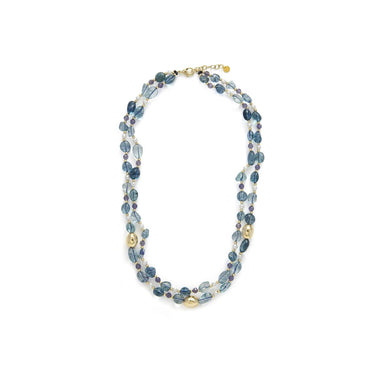 Collar de Plata de Ley 925 y Cristal Azul acabado en oro amarillo 18k - Aswudi