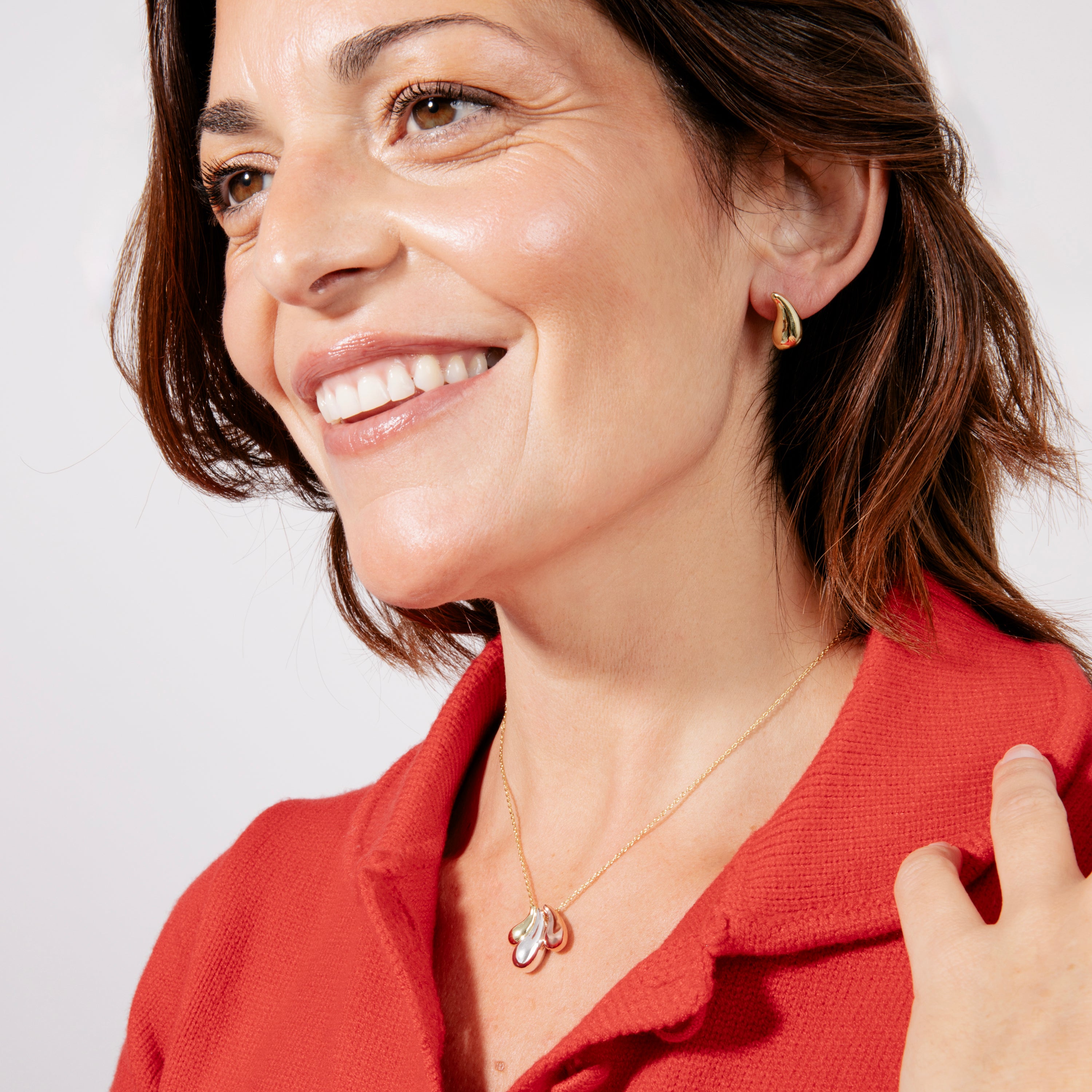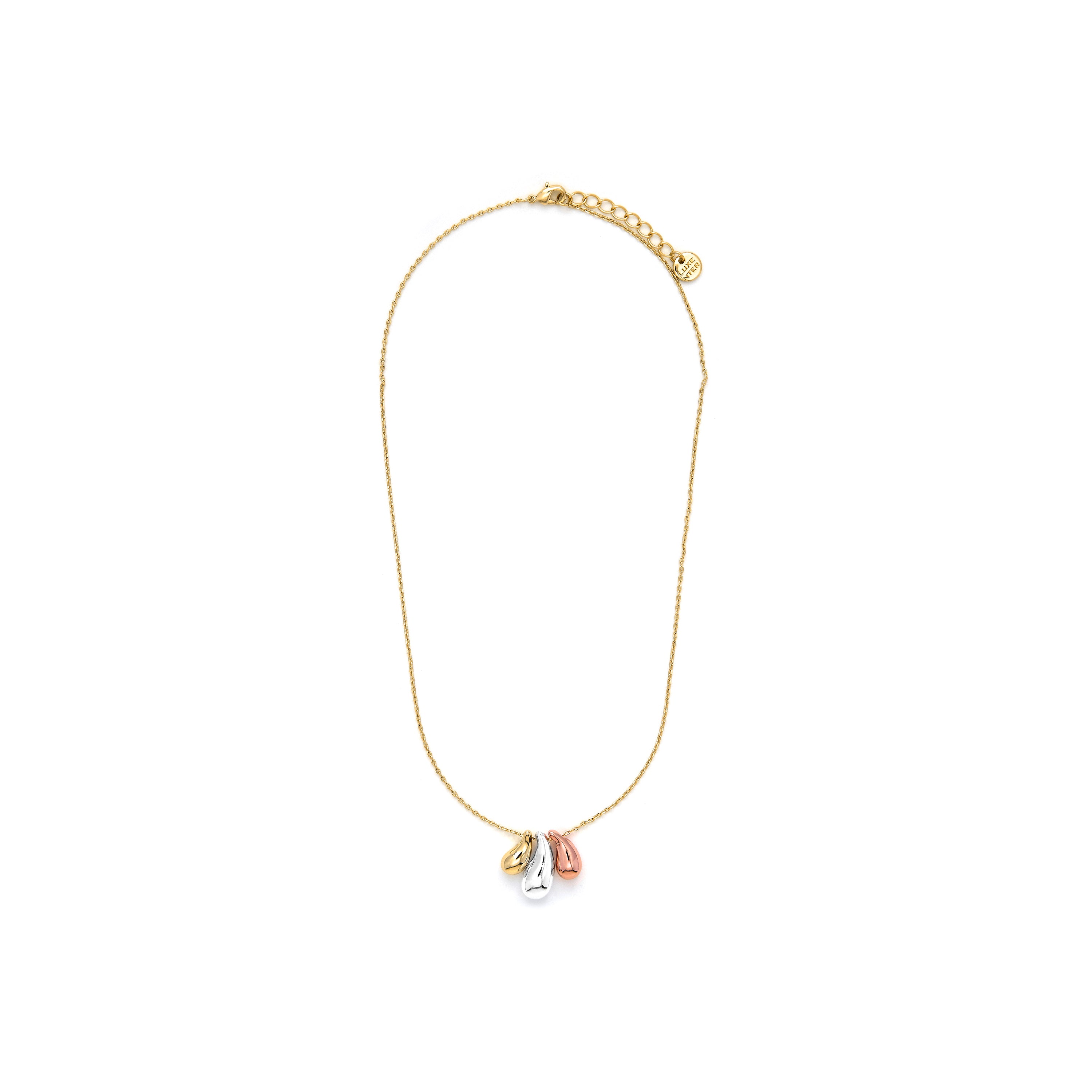 Set de Pendientes y Collar Necon acabado en rodio, oro rosa y oro amarillo de 18k. Joyas básicas sin pretensiones que son perfectas para el uso diario, pero también pueden funcionar en ocasiones especiales.