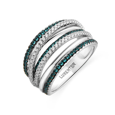 Anillo Atyra de Plata de Ley 925 y Cuarzo Hidrotermal Verde Paraiba acabado rodio