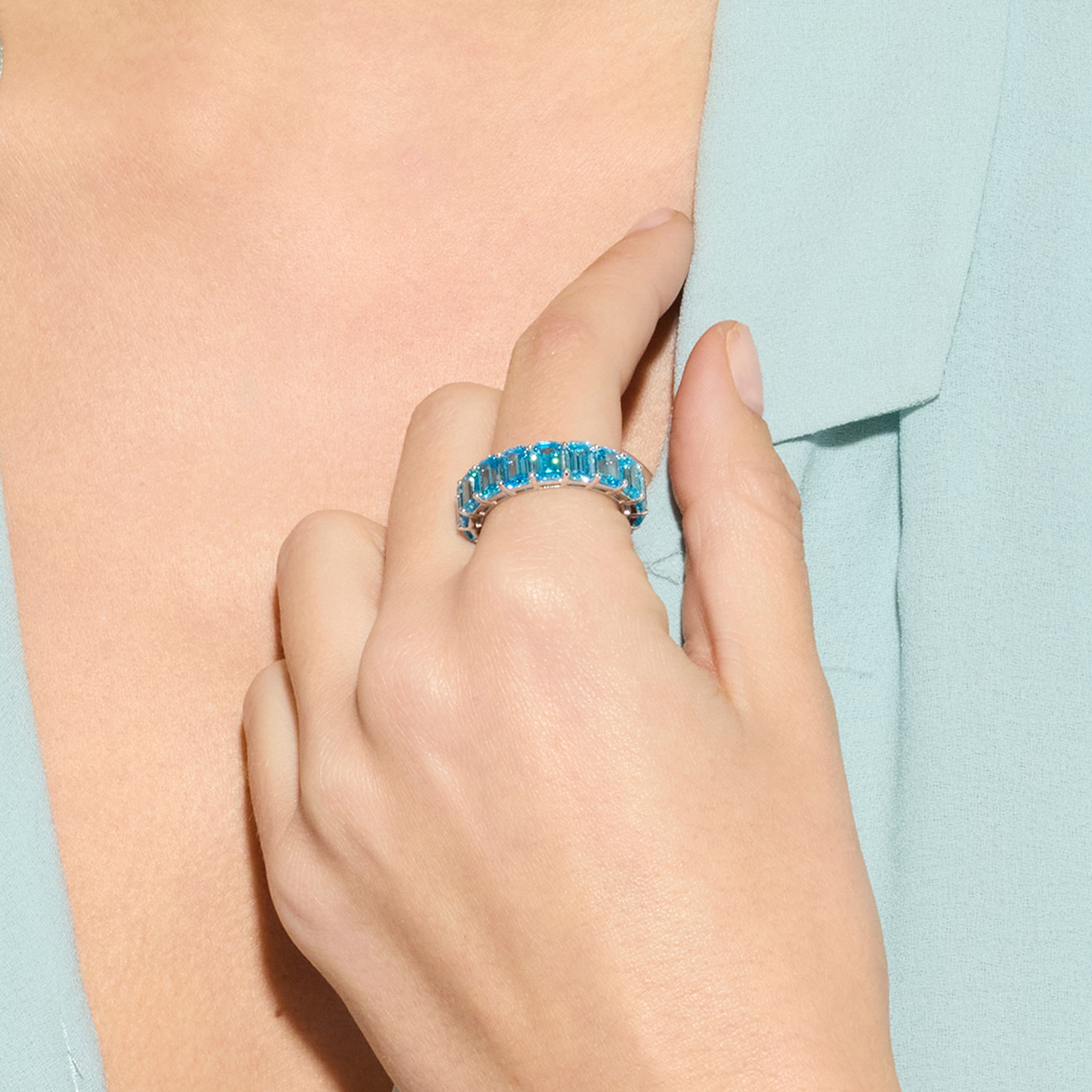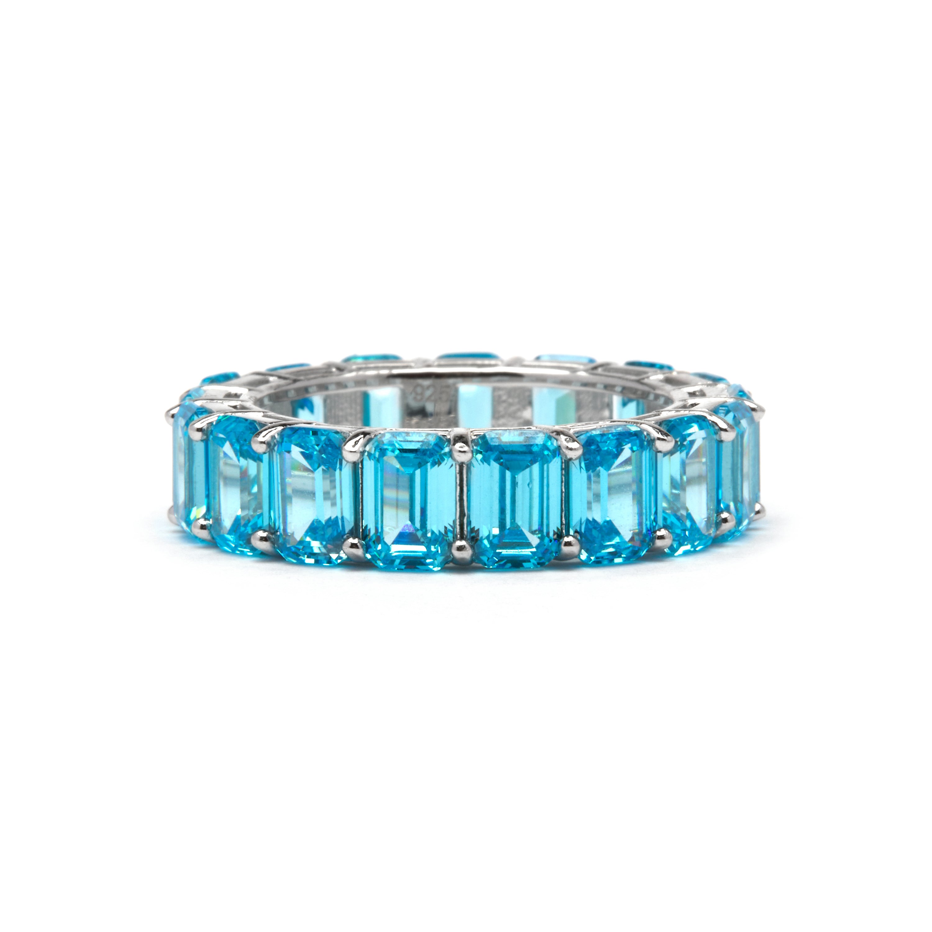 Anillo Syruo de Plata de Ley 925 y Circonita Topacio Azul acabado rodio