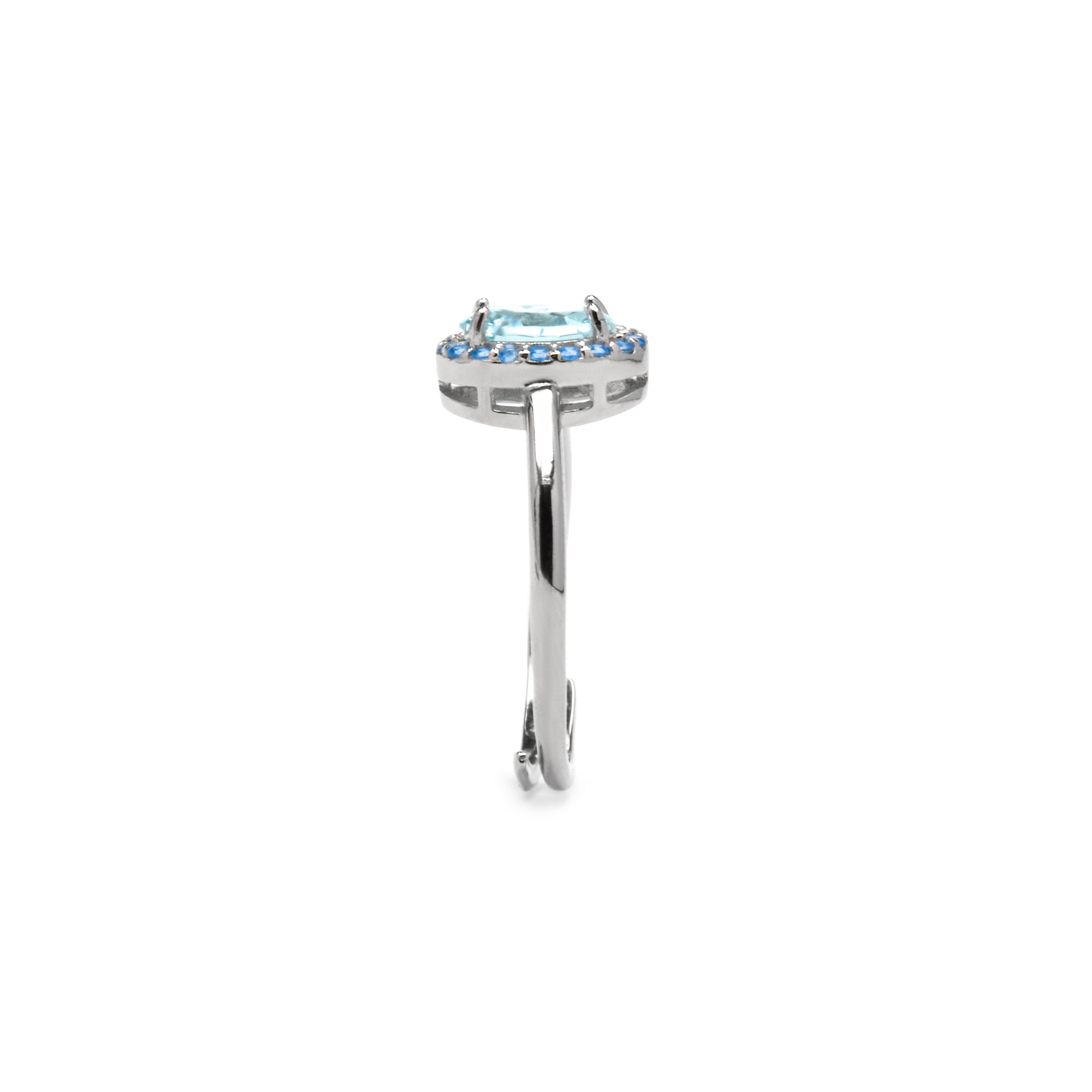 Anillo Unxo de Plata de Ley 925 y Circonita Aguamarina acabado rodio