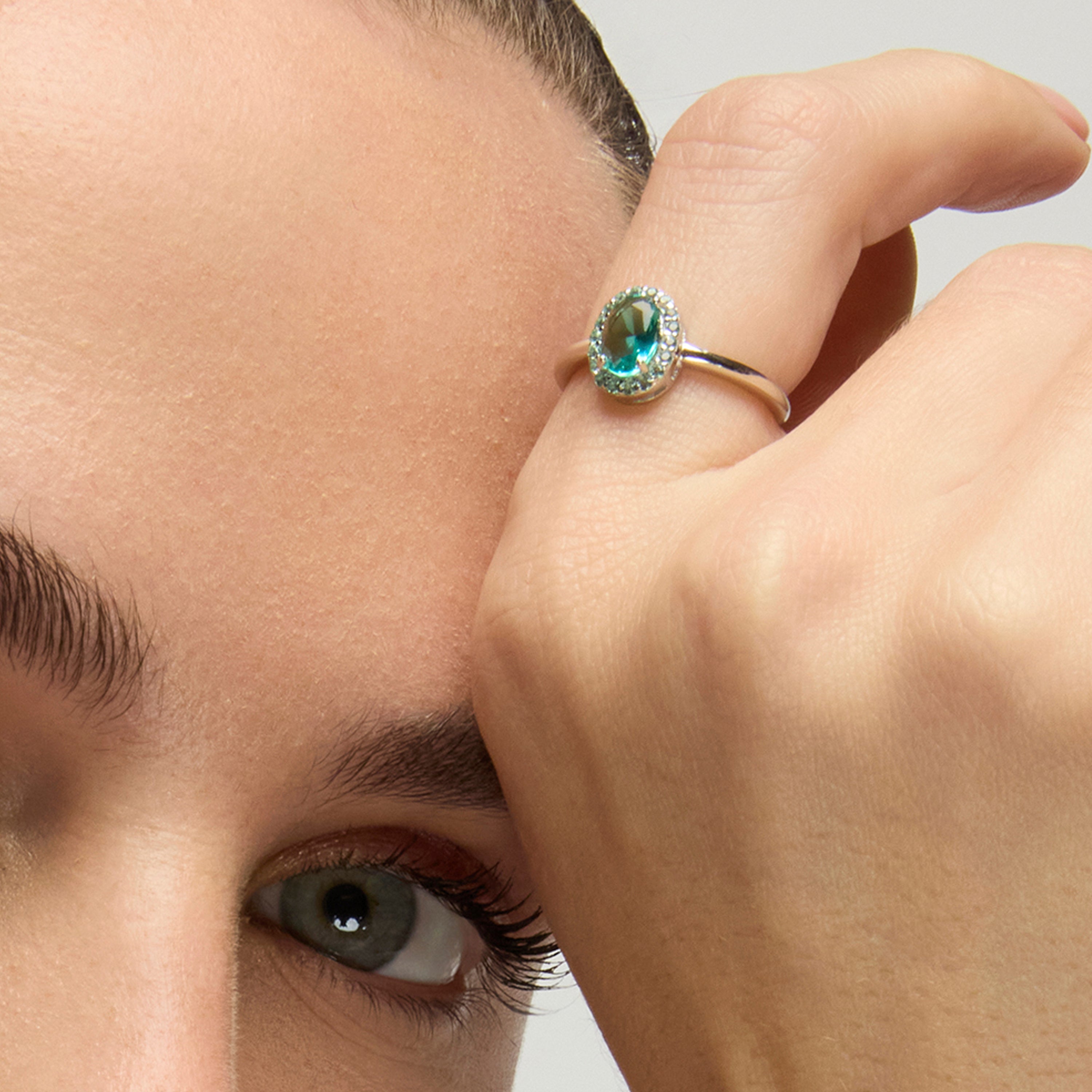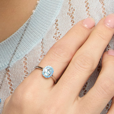 Anillo de Plata de Ley 925 y Circonita Aguamarina acabado rodio - Unxo