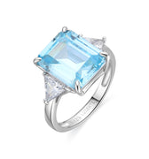 Anillo de Plata de Ley 925 y Circonita Aguamarina acabado rodio - Xifa