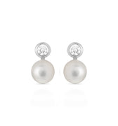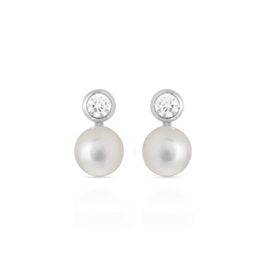 Pendientes de Plata de Ley 925 con Perla Blanca acabados en rodio - Essential