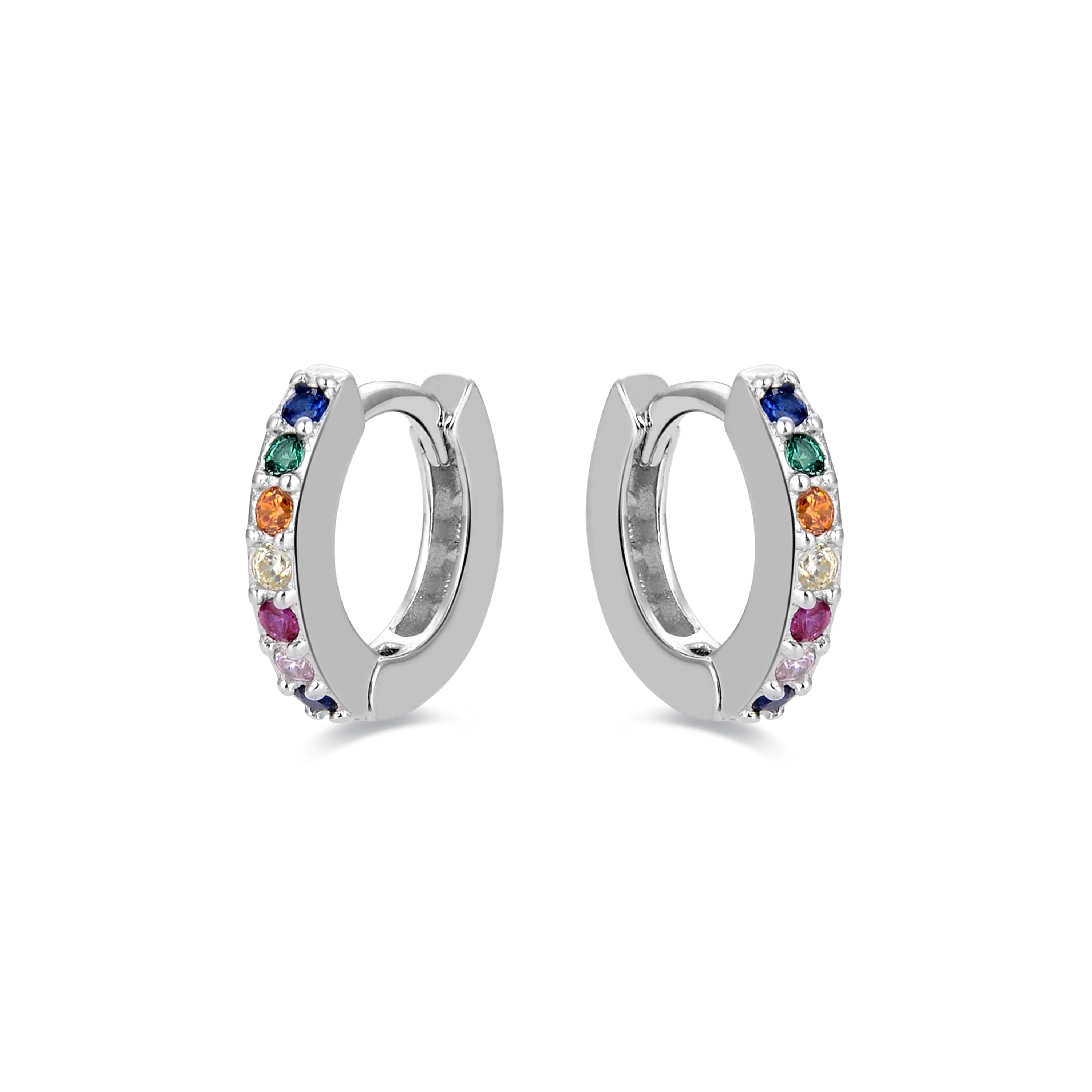 Aros leofcar de plata de ley 925 y circonita multicolor con acabado en baño de rodio. Trendy representa las tendencias clave en el mundo de la moda. Nuestra línea más espontanea, con un marcado carácter boho y espíritu moderno que concentra en joyas repletas de color entre las que destaca el uso de piedras naturales y diseños en forma de amuletos y talismanes.