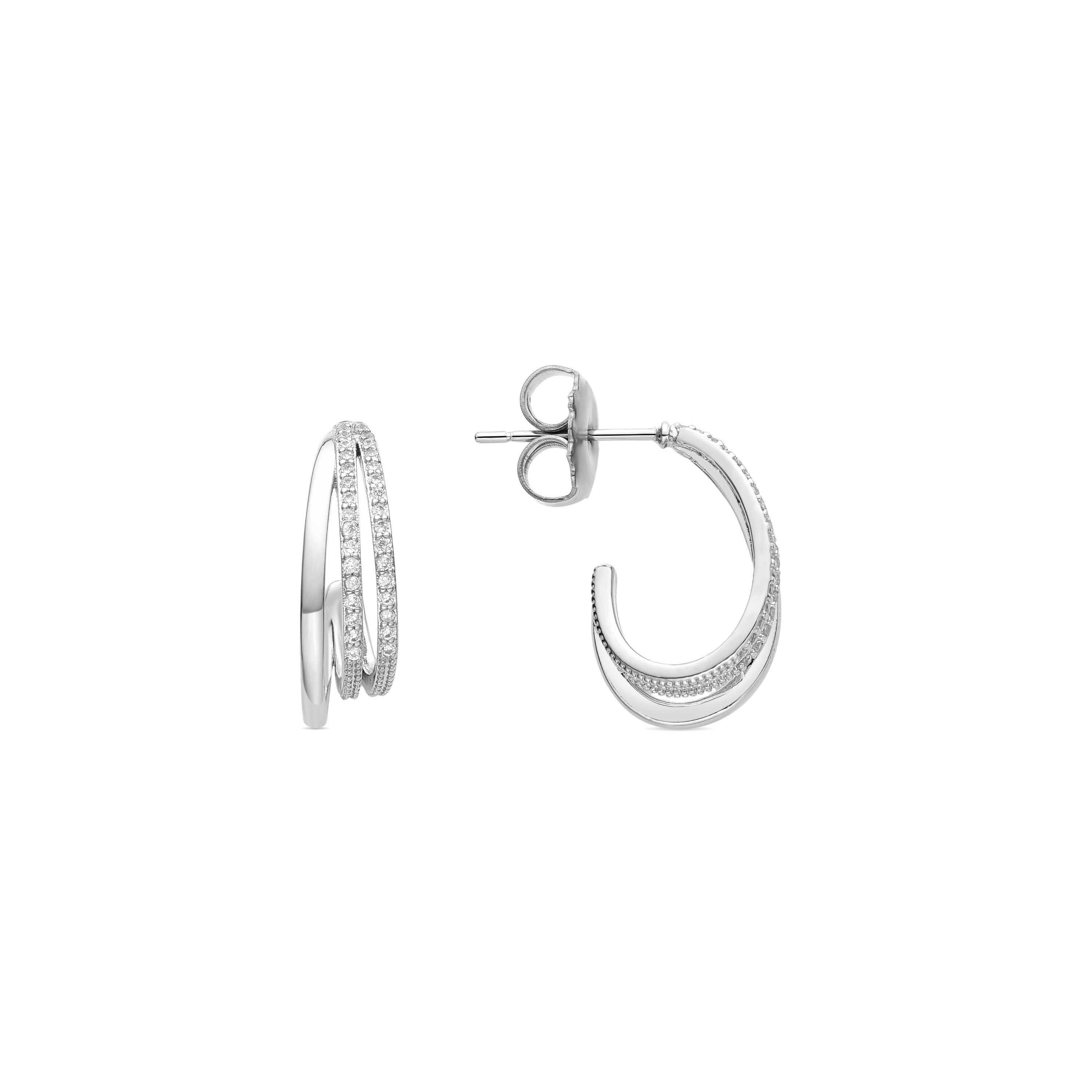Pendientes Taiky acabados en baño de rodio. África Basic encarna la sencillez refinada, piezas atemporales con líneas suaves y el brillo adicional de las circonitas. Joyas básicas sin pretensiones que son perfectas para el uso diario, pero también pueden funcionar en ocasiones especiales.