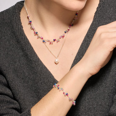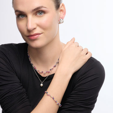 Pulsera de Plata de Ley 925 y Cristal Rosa acabado rodio - Colir