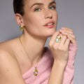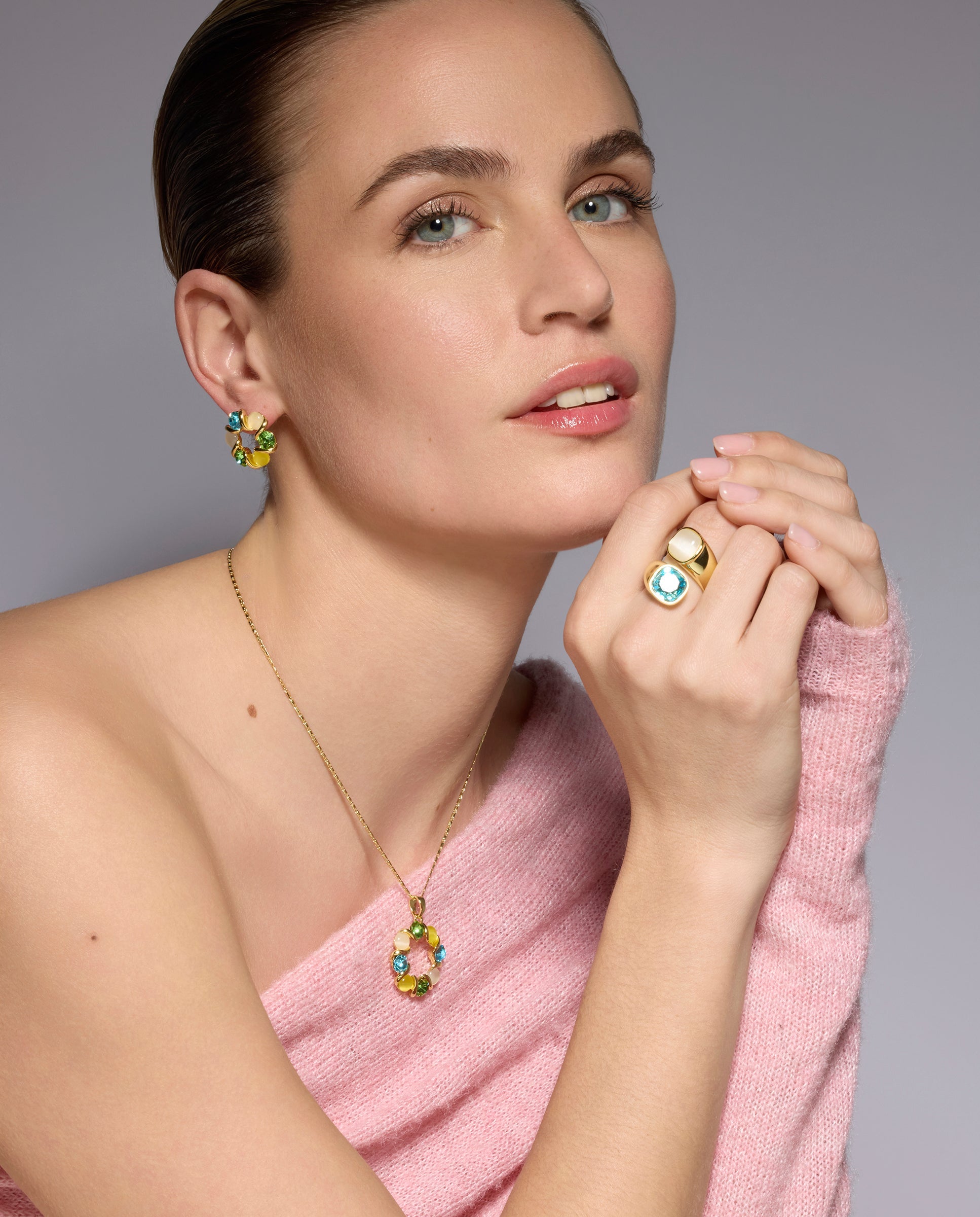 Anillo Sethi de Cristal Azul acabado oro amarillo de 18k