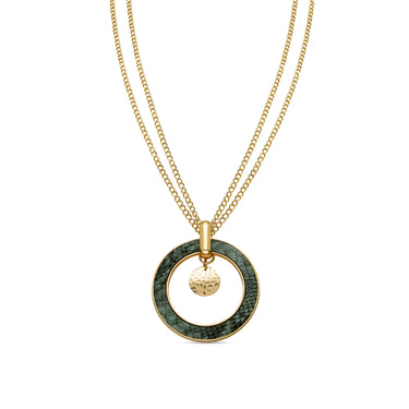 Collar Amta de Cuero Verde Claro acabado en oro amarillo de 18K. África se convierte en la línea perfecta para mujeres con personalidad, que no temen arriesgar y lucir piezas con carácter propio.