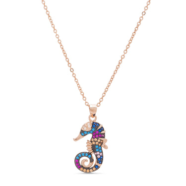 Collar de Plata de Ley 925 con Circonita Multicolor acabado en oro rosa 18K - Cawig