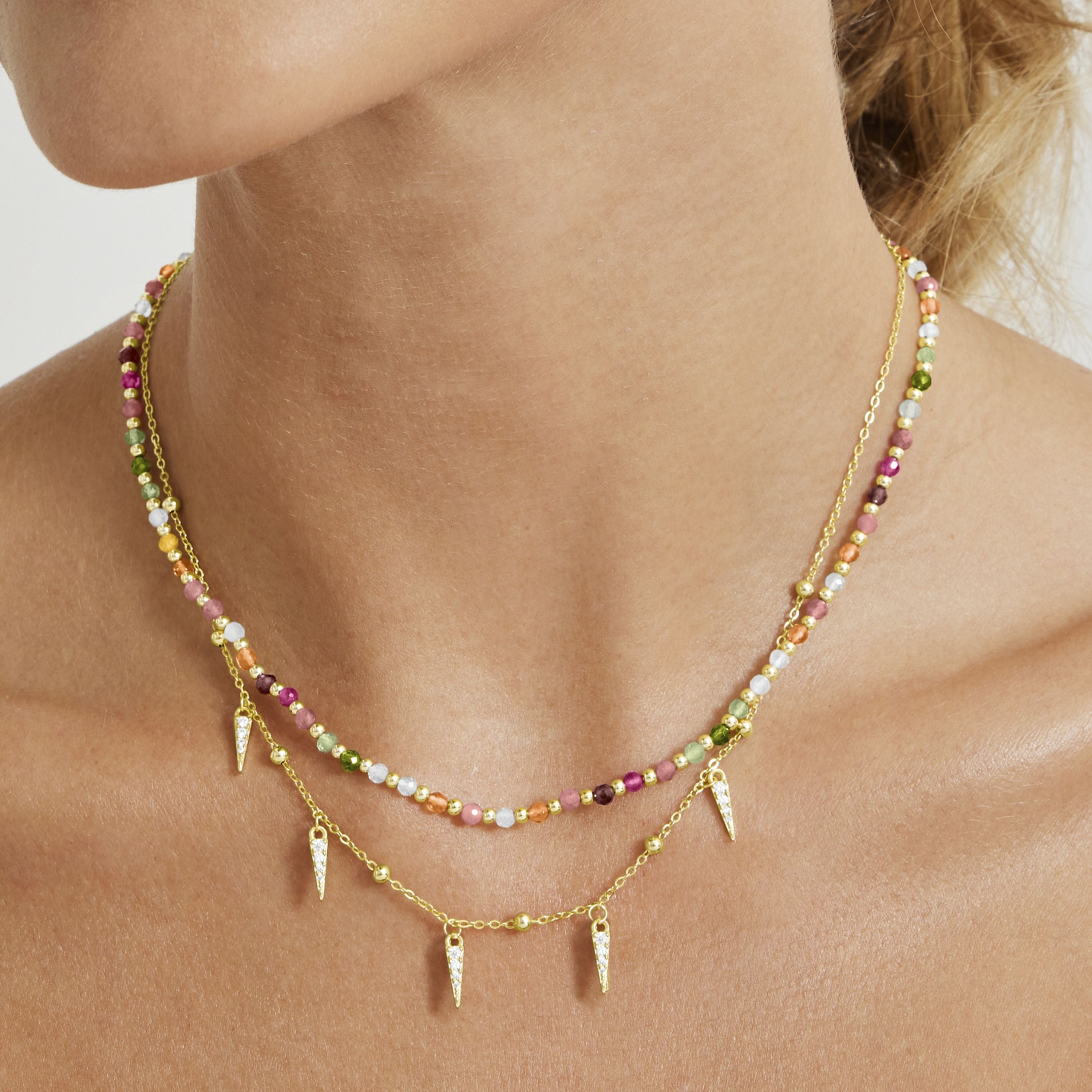 Collar de Plata de Ley 925 con Cristal Multicolor acabado en oro amarillo 18K - Dirrim