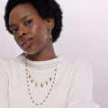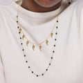 Collar de acero Omka de Onix acabado en oro amarillo de 18k. El estilo Boho es una estética de espíritu libre que mezcla diferentes culturas y expresiones artísticas en un estilo ecléctico con énfasis en los elementos orgánicos y la naturaleza.