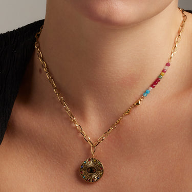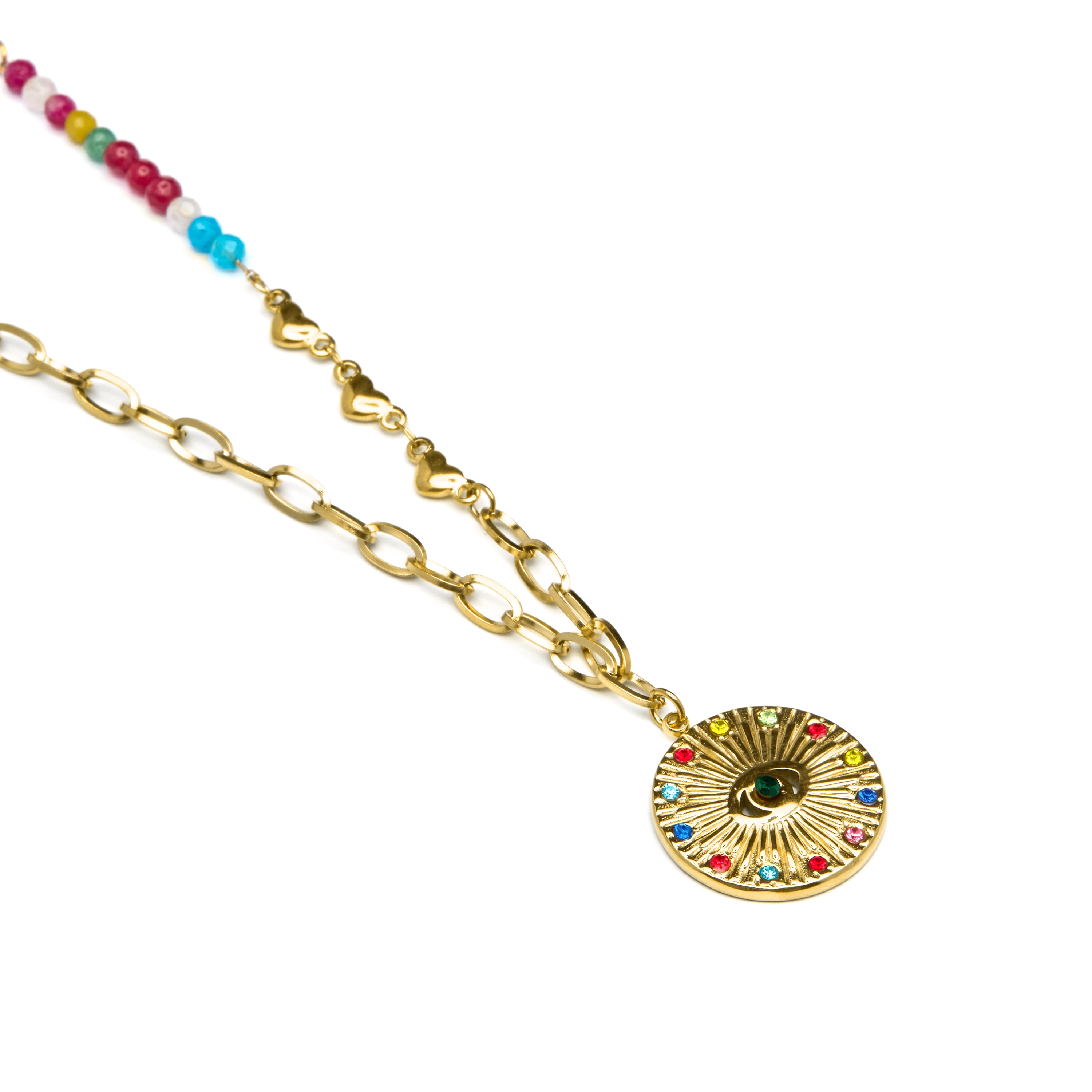 Collar de Cristal Multicolor acabado en oro amarillo 18K- Targey