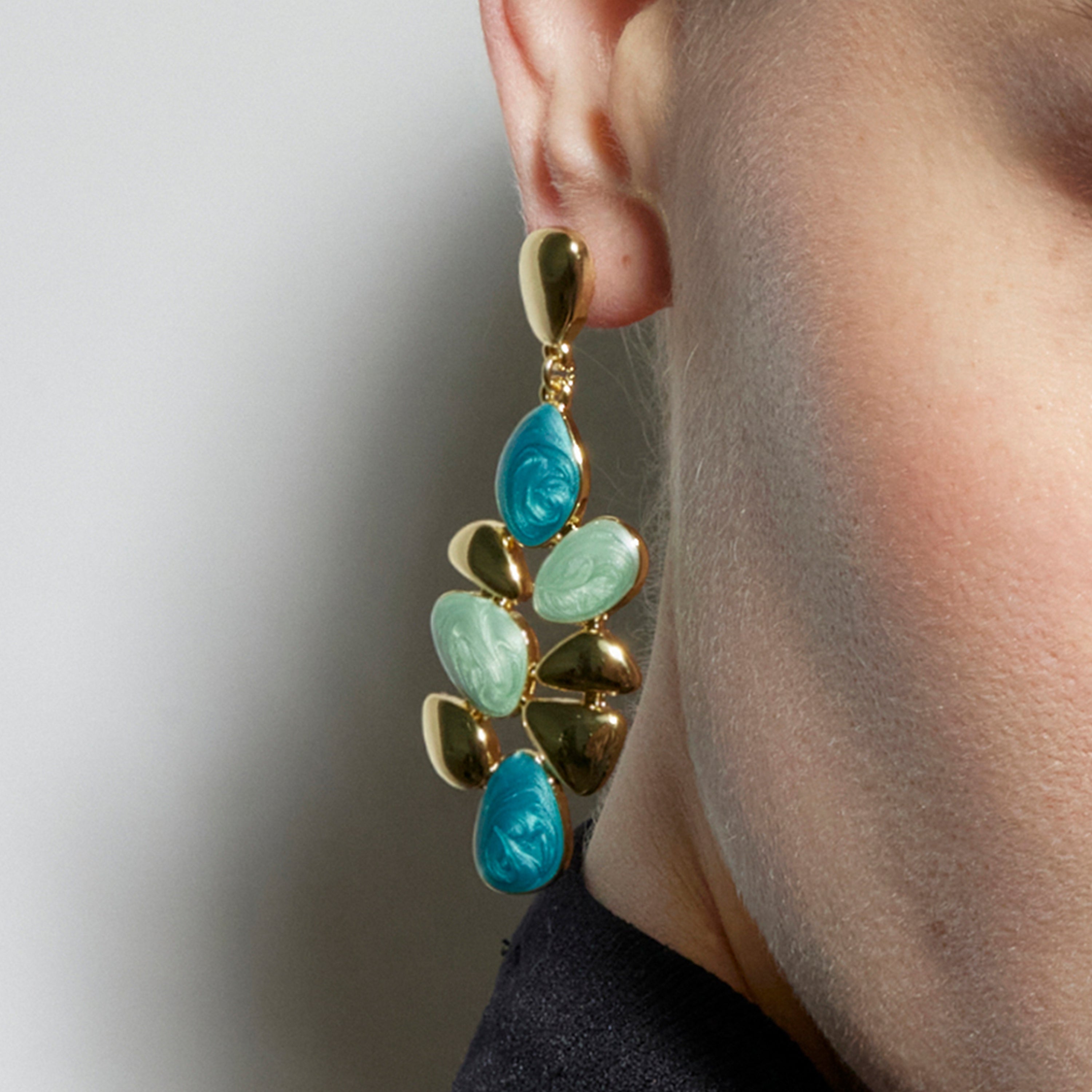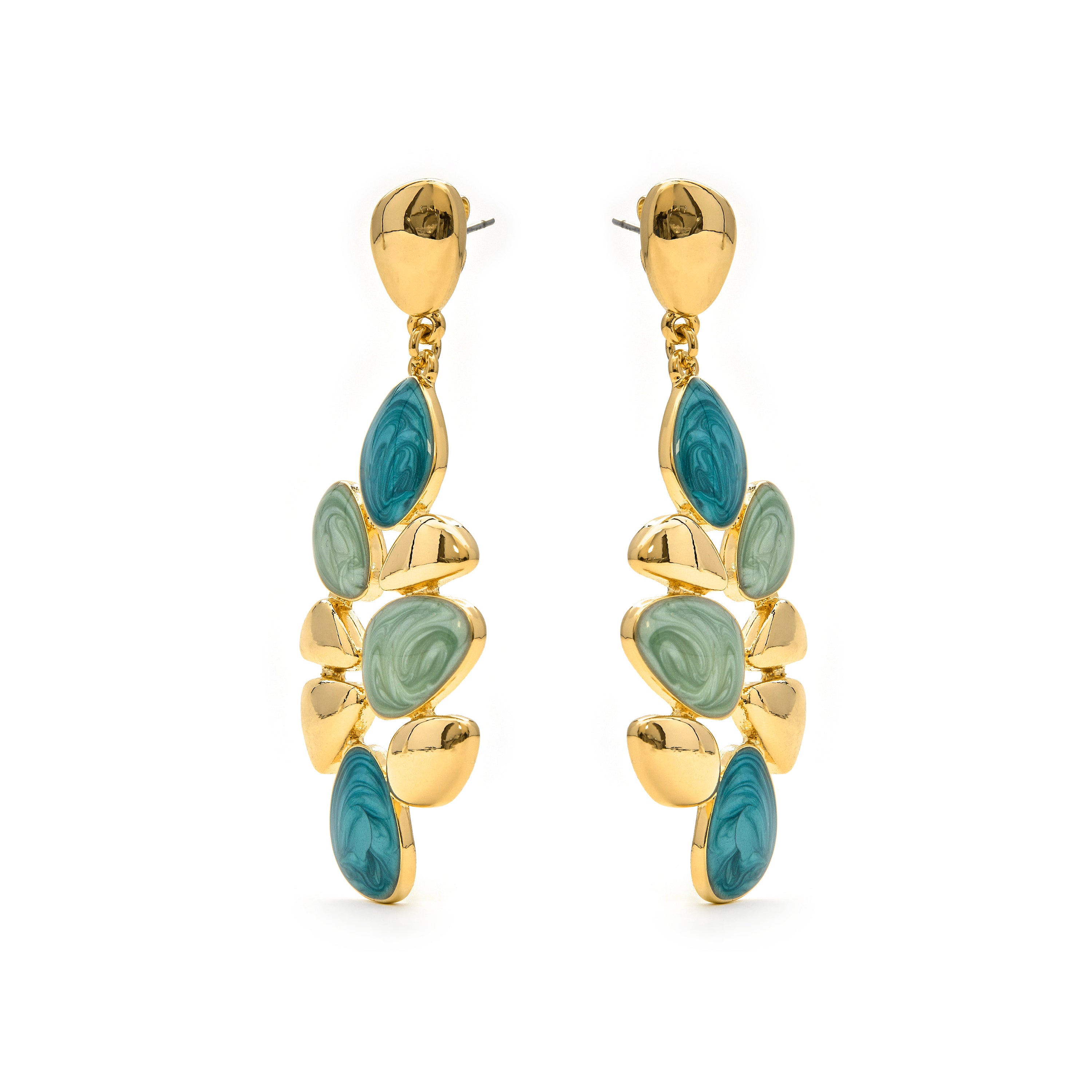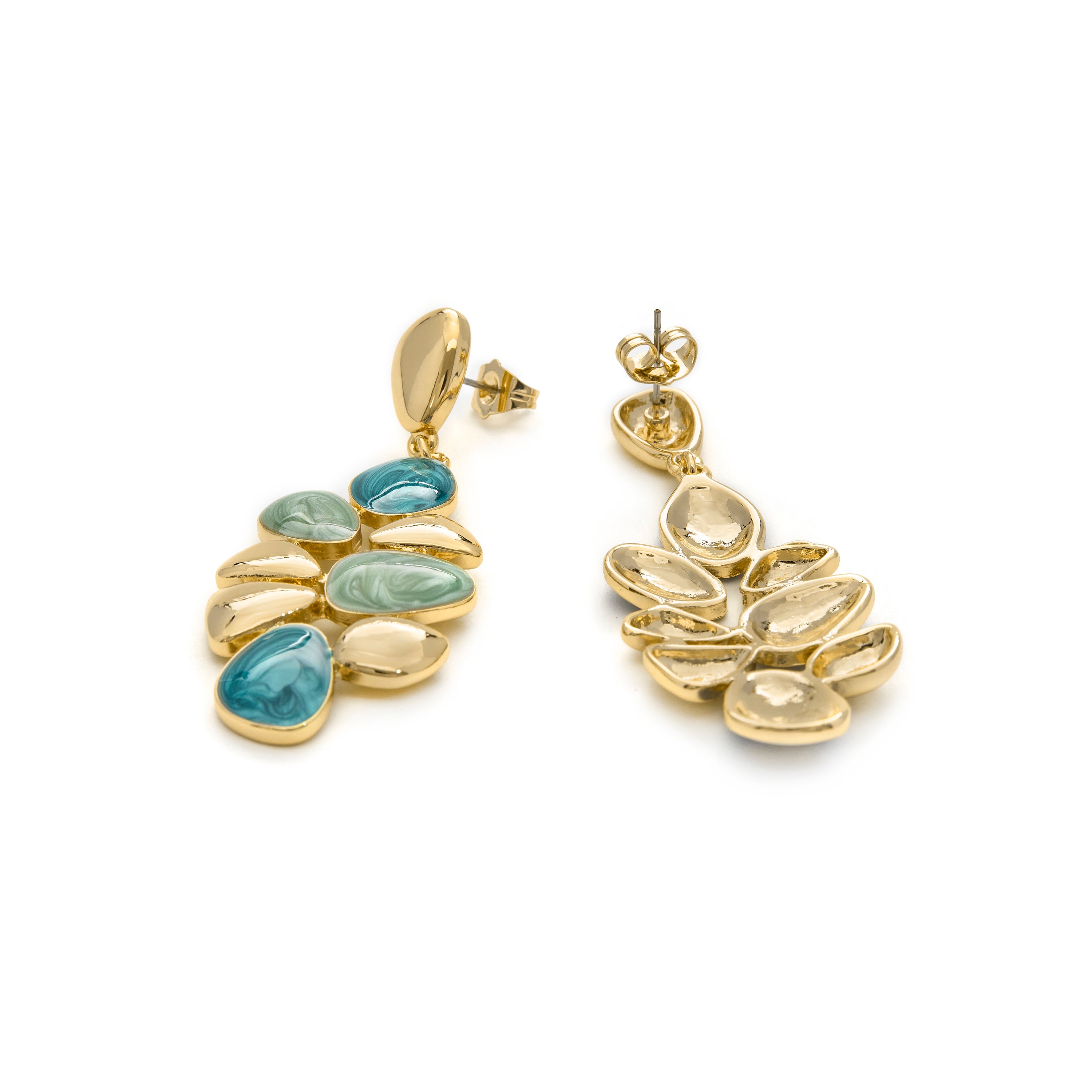 Pendientes Nortul de Resina Verde acabado en oro amarillo de 18K. África se convierte en la línea perfecta para mujeres con personalidad, que no temen arriesgar y lucir piezas con carácter propio.