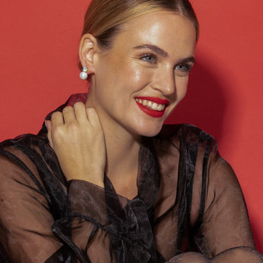 Pendientes Pacezu con Perla Blanca acabado oro 18k. África se convierte en la línea perfecta para mujeres con personalidad, que no temen arriesgar y lucir piezas con carácter propio.