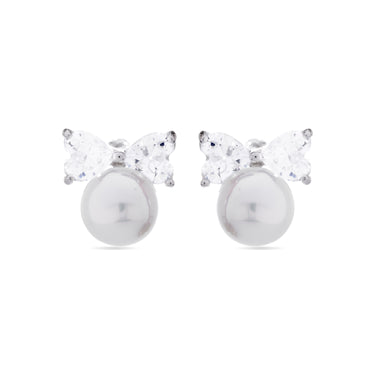 Pendientes de Plata de Ley 925 con Perla Blanca acabados en rodio - Theria