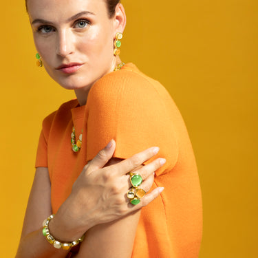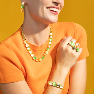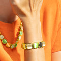 Pulsera Jajim con Ojo de Gato Multicolor acabado oro 18k. África se convierte en la línea perfecta para mujeres con personalidad, que no temen arriesgar y lucir piezas con carácter propio.