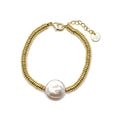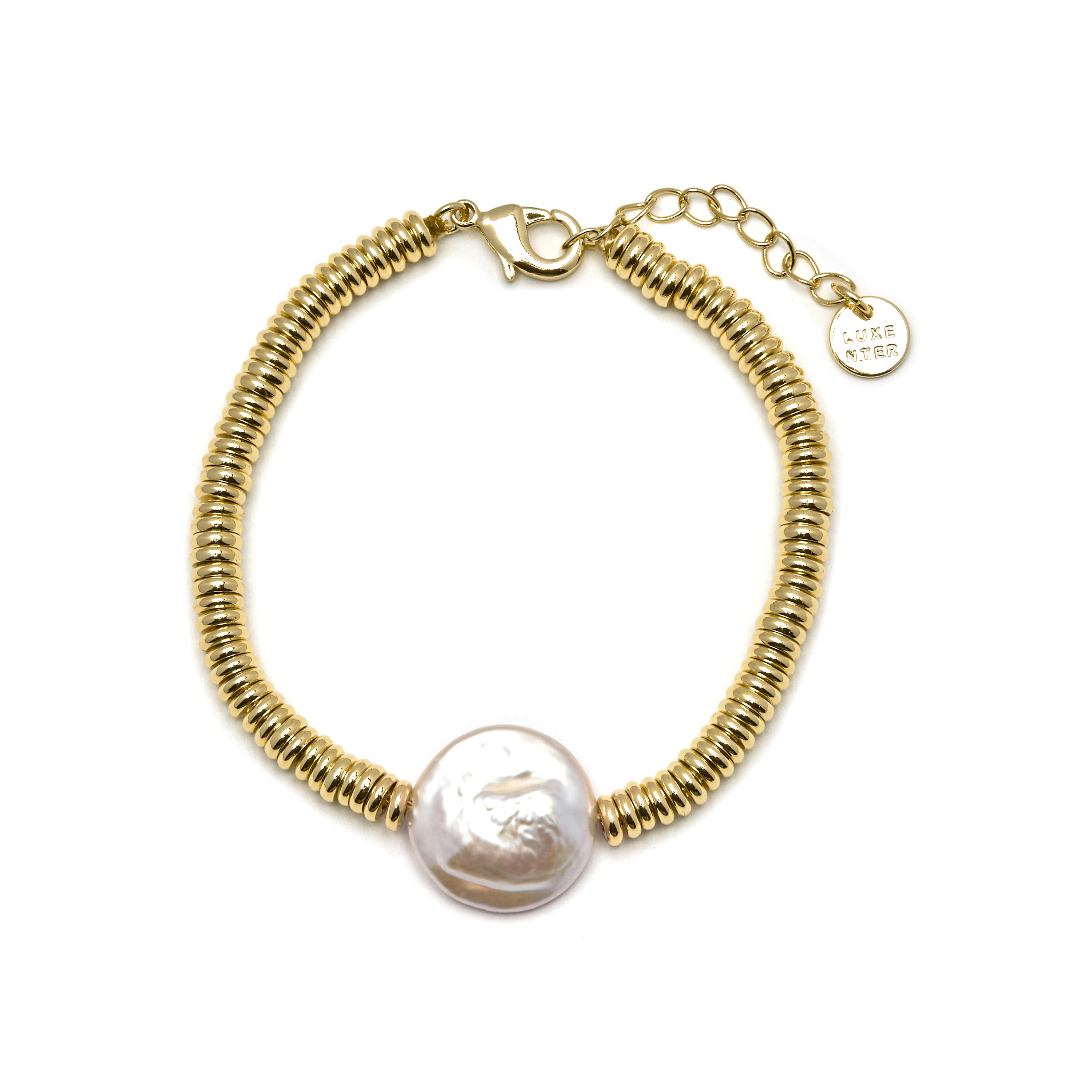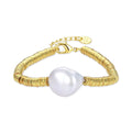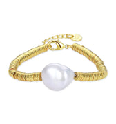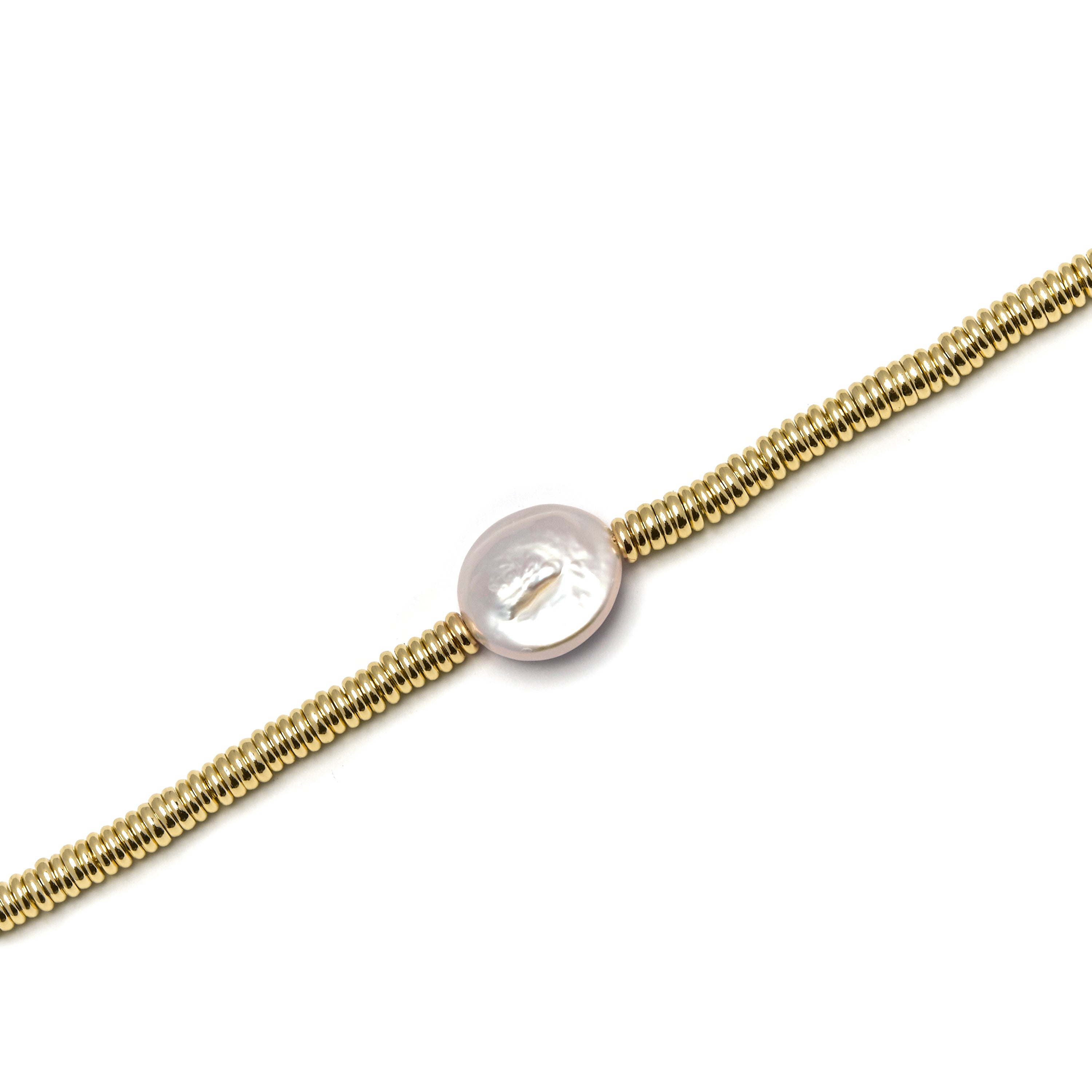 Pulsera Siever cierre de Plata de Ley 925, abalorios de metal, acabado en oro amarillo de 18 Quilates. Además de lograr estilismos para trotar por el mundo, los diseños de la línea de África Perlas marcan la diferencia y consiguen que esa diferencia sea radical. Diseños realizados cuidadosamente a mano con una aleación de metal y perlas que dan vida a unas sofisticadas joyas. Su exotismo solo es comparable con su recato. Intuitiva, ponderada acierta cada vez que te lo pones y representa como pocas el carácter urbano más cosmopolita: BE AUTHENTIC (NOT) UNIQUE.