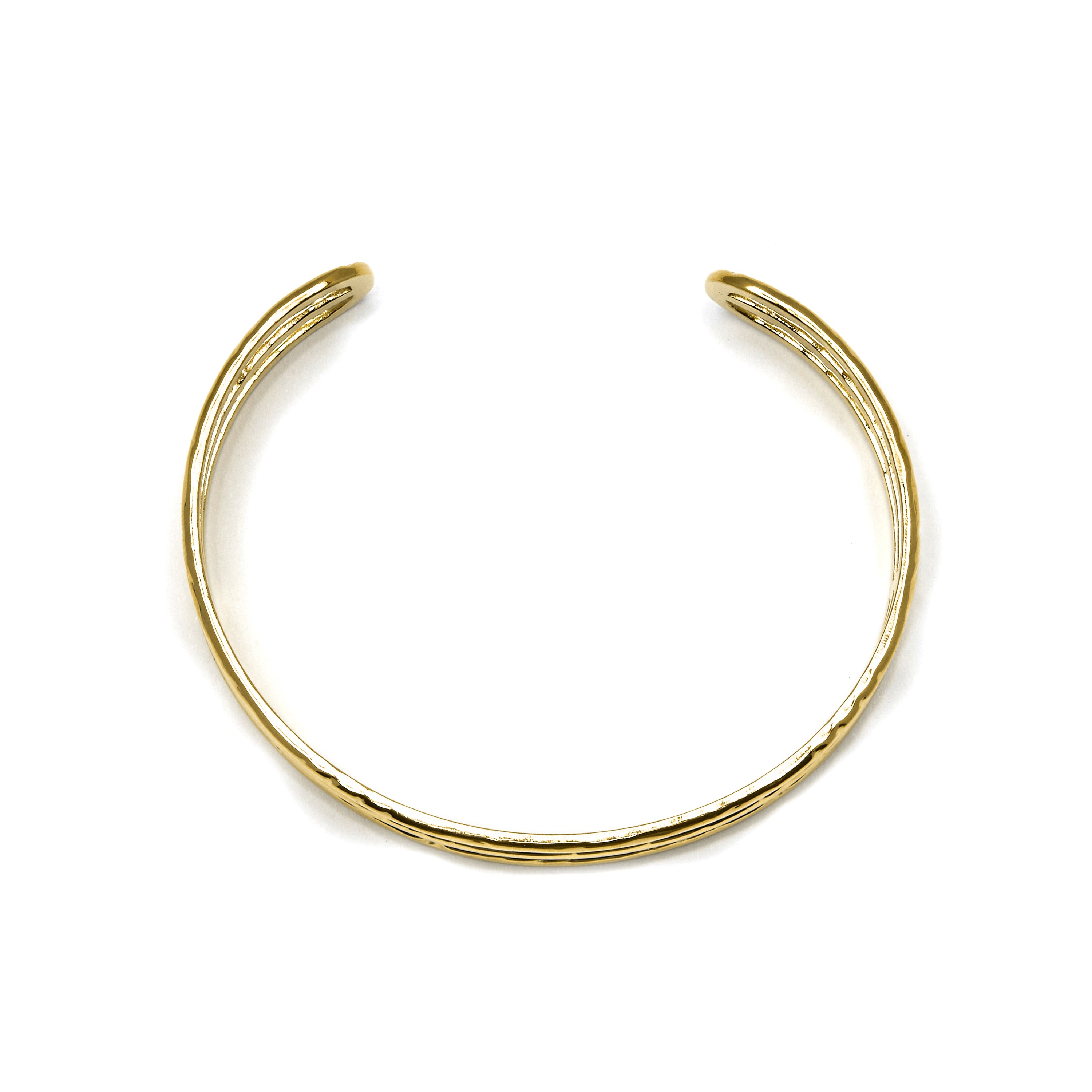 Pulsera de acero Waeu acabada en oro amarillo de 18K. El estilo Boho es una estética de espíritu libre que mezcla diferentes culturas y expresiones artísticas en un estilo ecléctico con énfasis en los elementos orgánicos y la naturaleza.