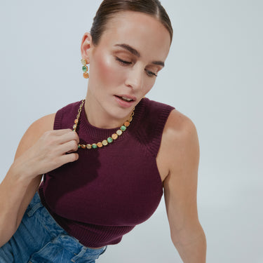 Collar Shureo con Ojo de Gato Multicolor acabado oro 18k. África se convierte en la línea perfecta para mujeres con personalidad, que no temen arriesgar y lucir piezas con carácter propio.