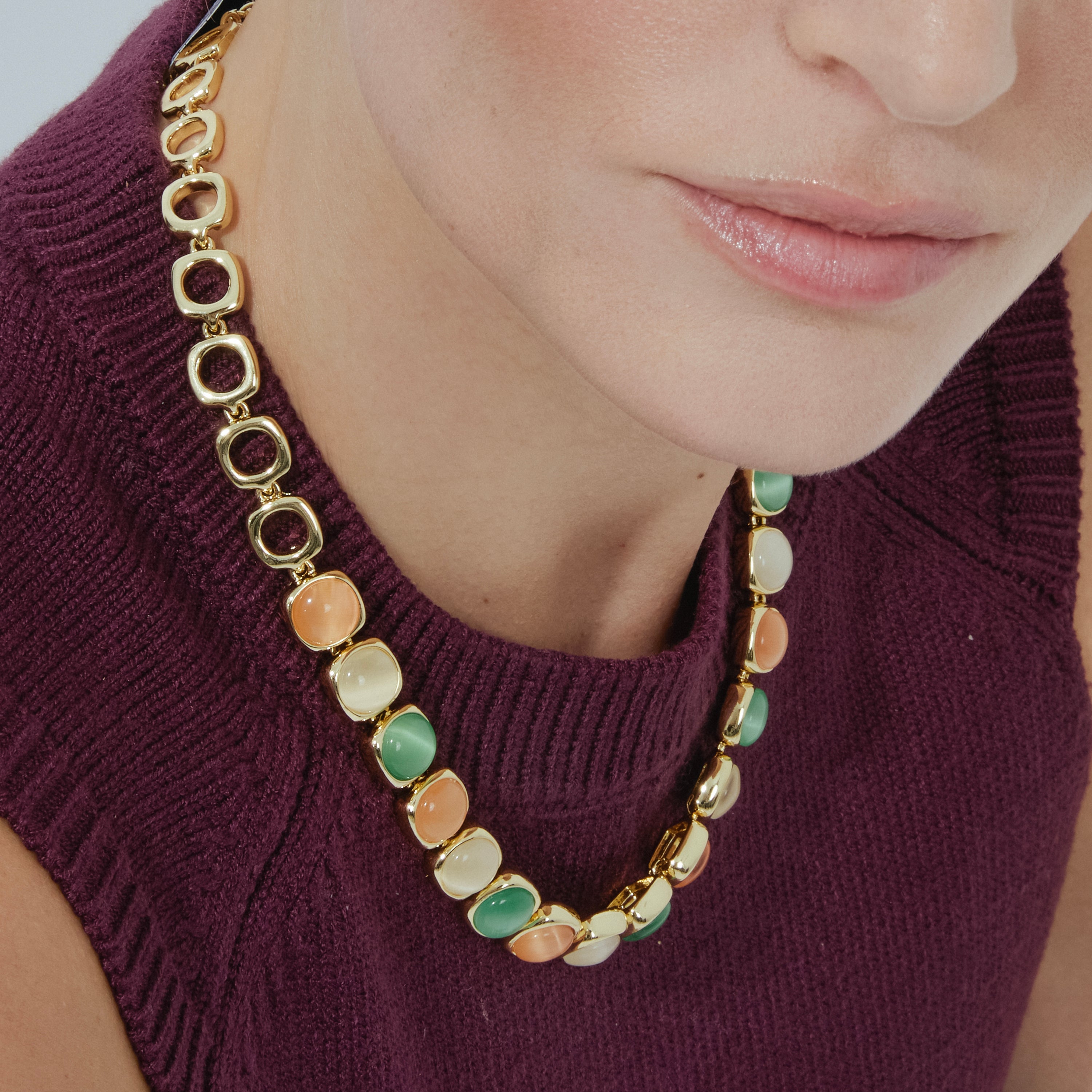 Collar con Ojo de Gato Multicolor acabado oro 18k - Shureo