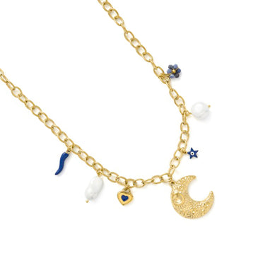 Collar Lynou de Lacado Azul acabado en Oro Amarillo 18k