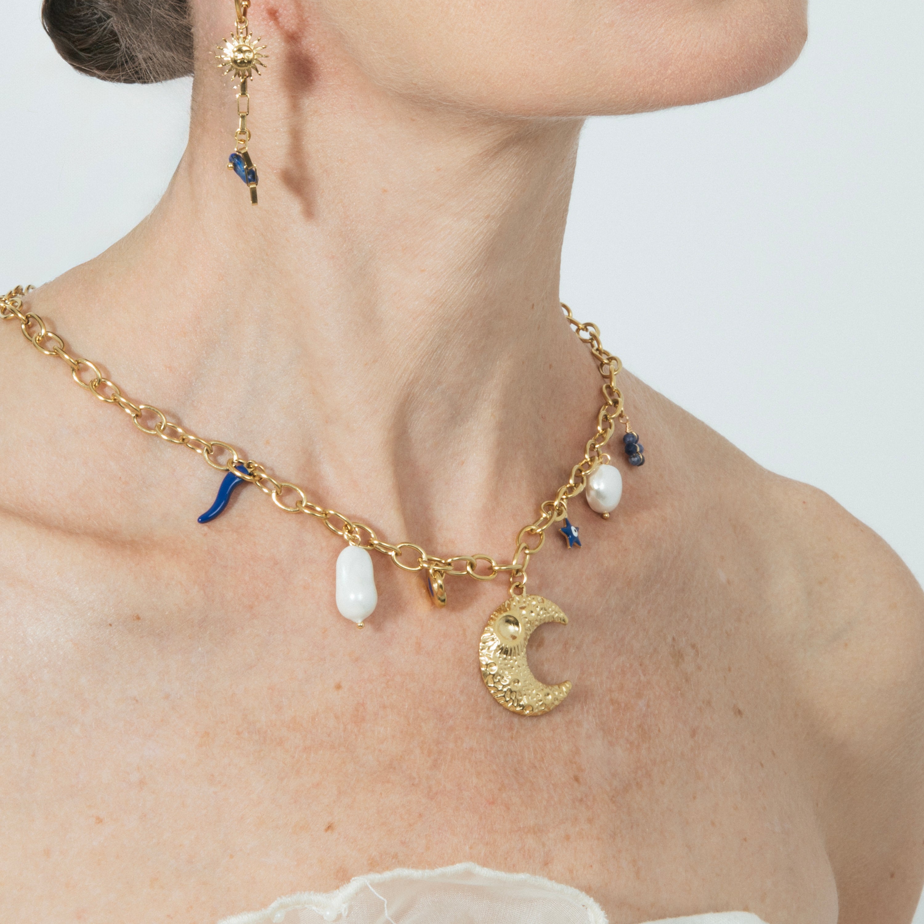 Collar de Lacado Azul acabado en oro amarillo 18k - Lynou