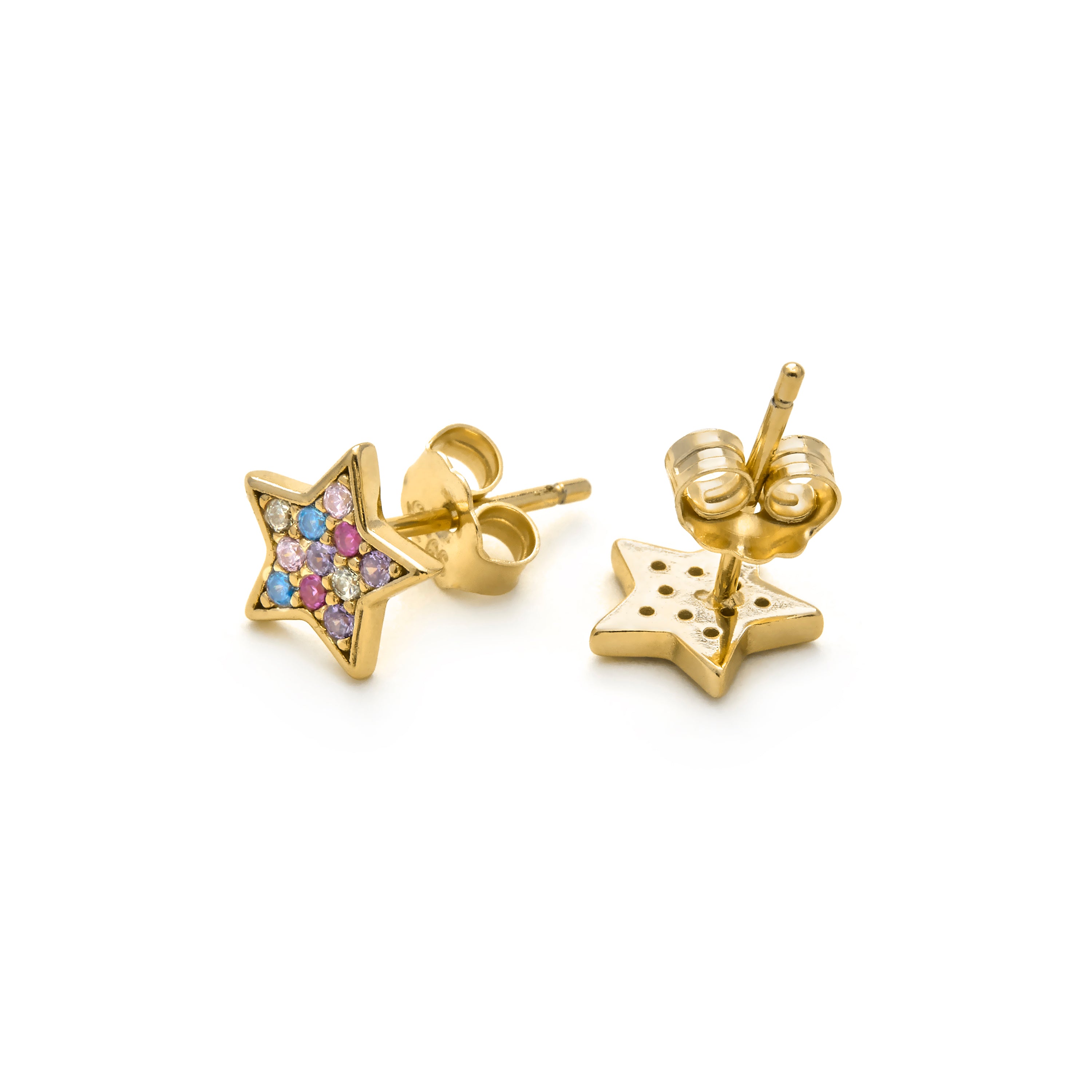 Pendientes de Plata de Ley 925 y Circonita Multicolor acabado en oro amarillo 18k - Lalo