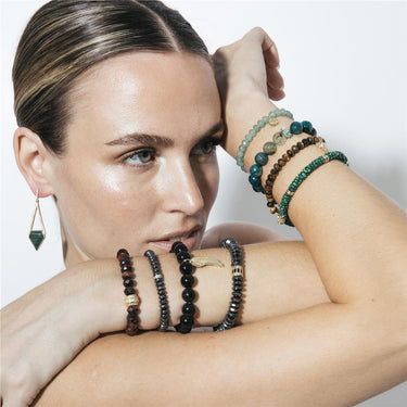 Pulsera Kremi de Plata de Ley 925 y Agata Verde acabado en Oro Amarillo 18k
