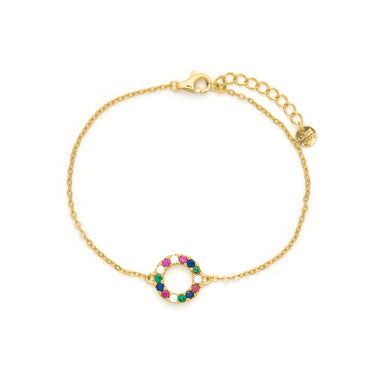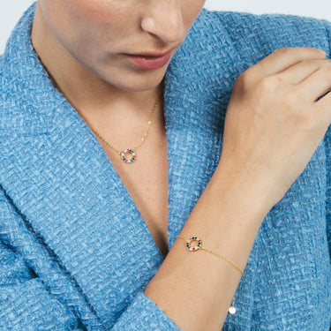 Pulsera Machi de Plata de Ley 925 y Circonita Multicolor acabado oro amarillo de 18 quilates.