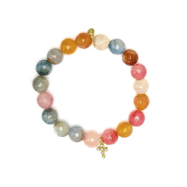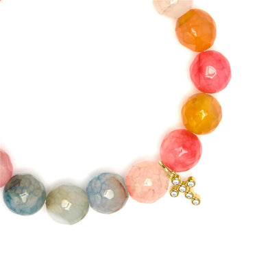 Pulsera Morak de Plata de Ley 925 y Agata Multicolor acabado en Oro Amarillo 18k