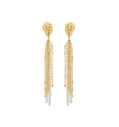 Pendientes de metal Subri de Perla Blanca acabado en oro amarillo de 18k. El estilo Boho es una estética de espíritu libre que mezcla diferentes culturas y expresiones artísticas en un estilo ecléctico con énfasis en los elementos orgánicos y la naturaleza.