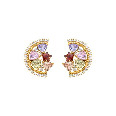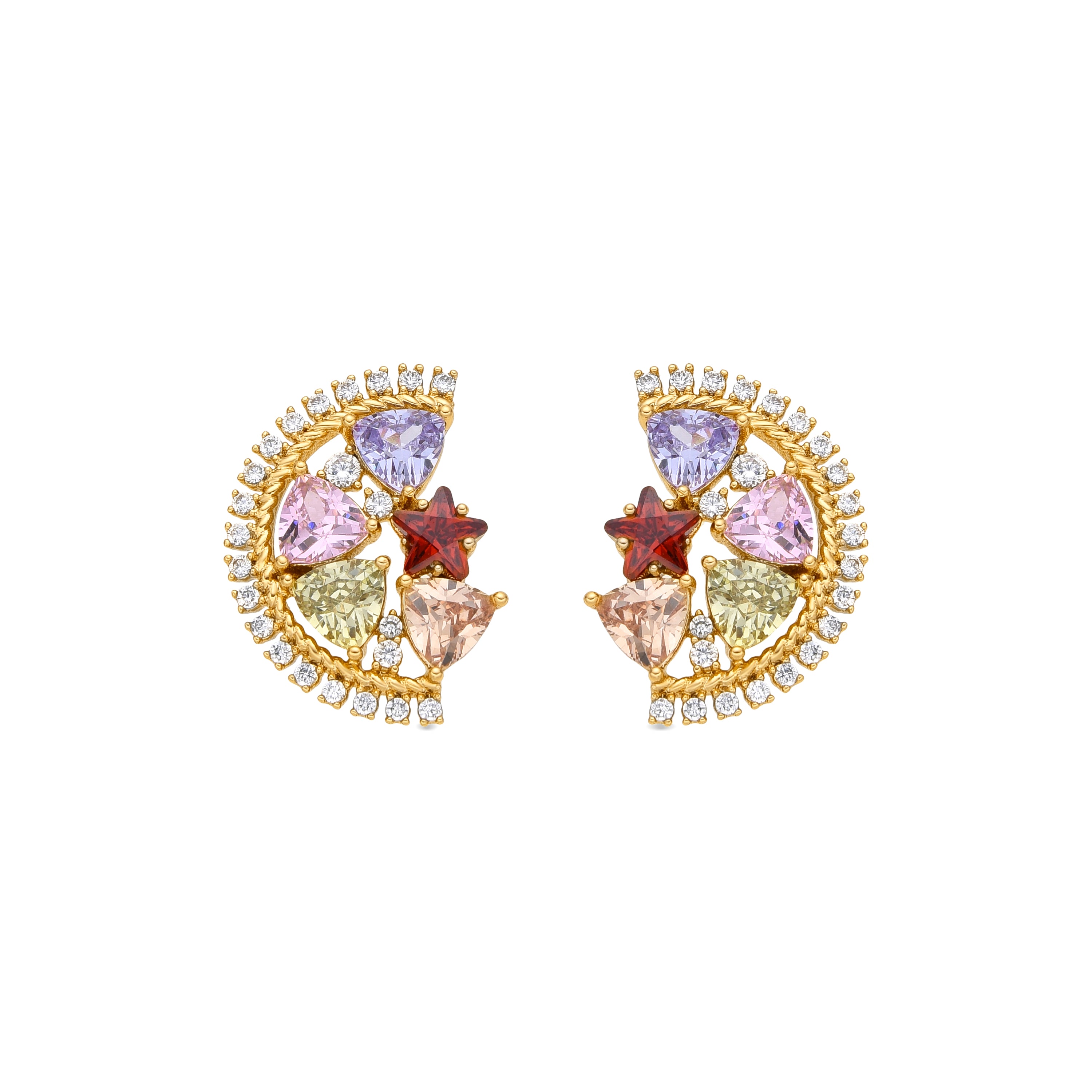Pendientes acabado oro amarillo de 18k y Circonita Multicolor - Brok